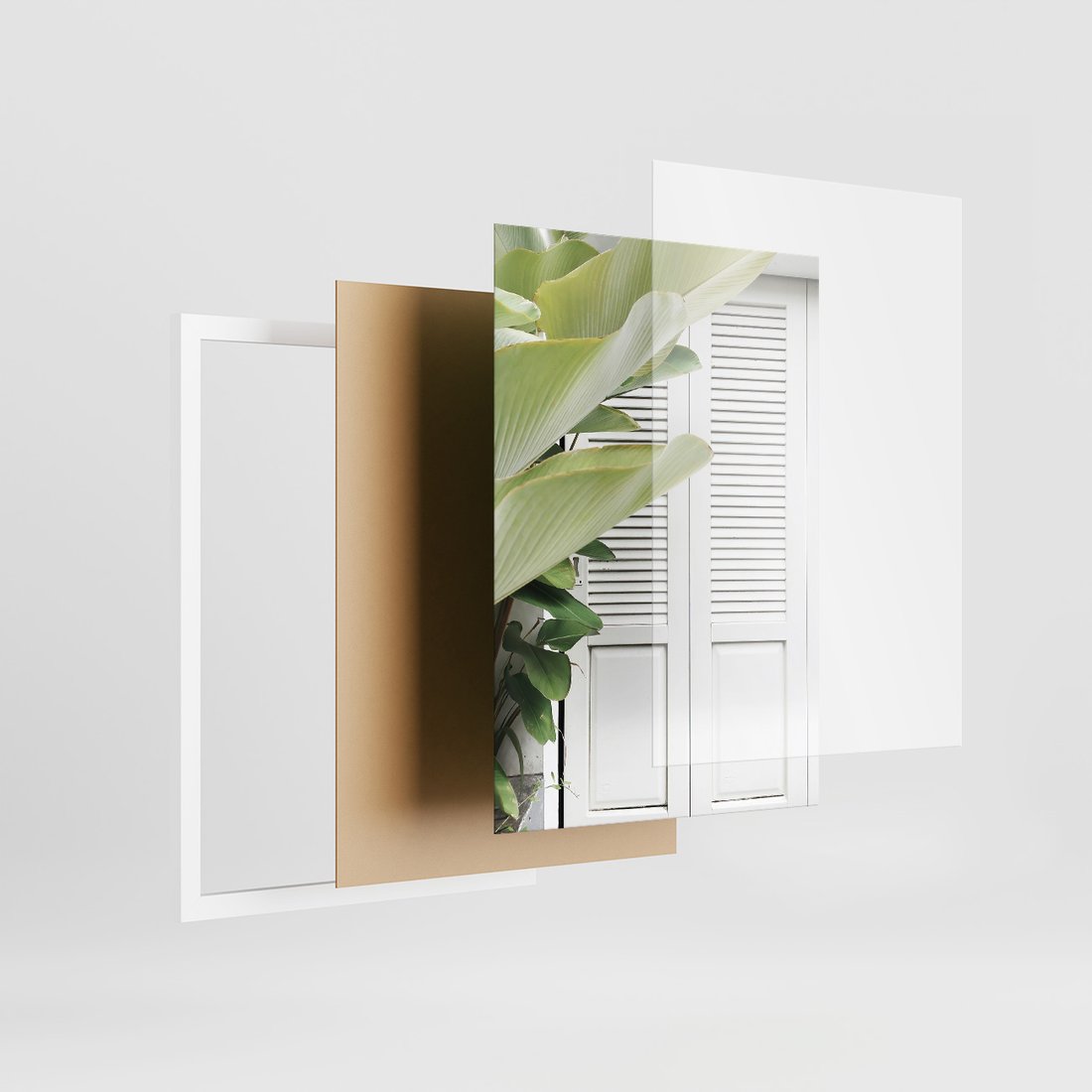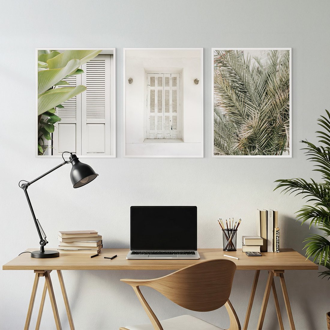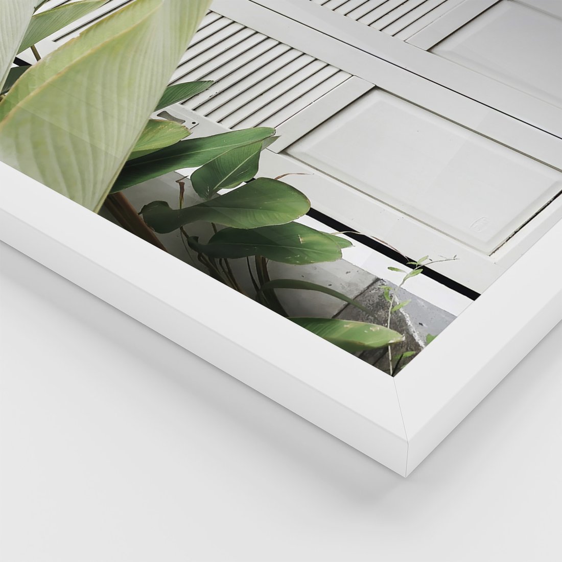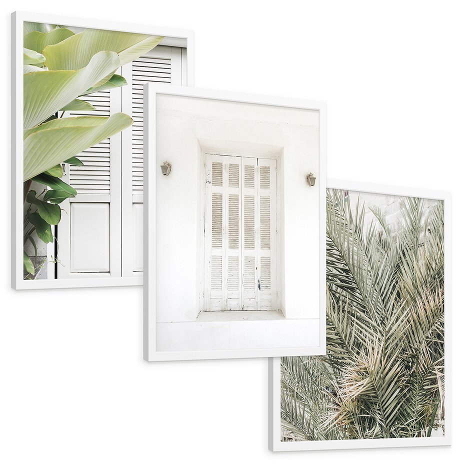 Zestaw obrazy w ramie, plakaty - liście, okno, ściana - rama biała
