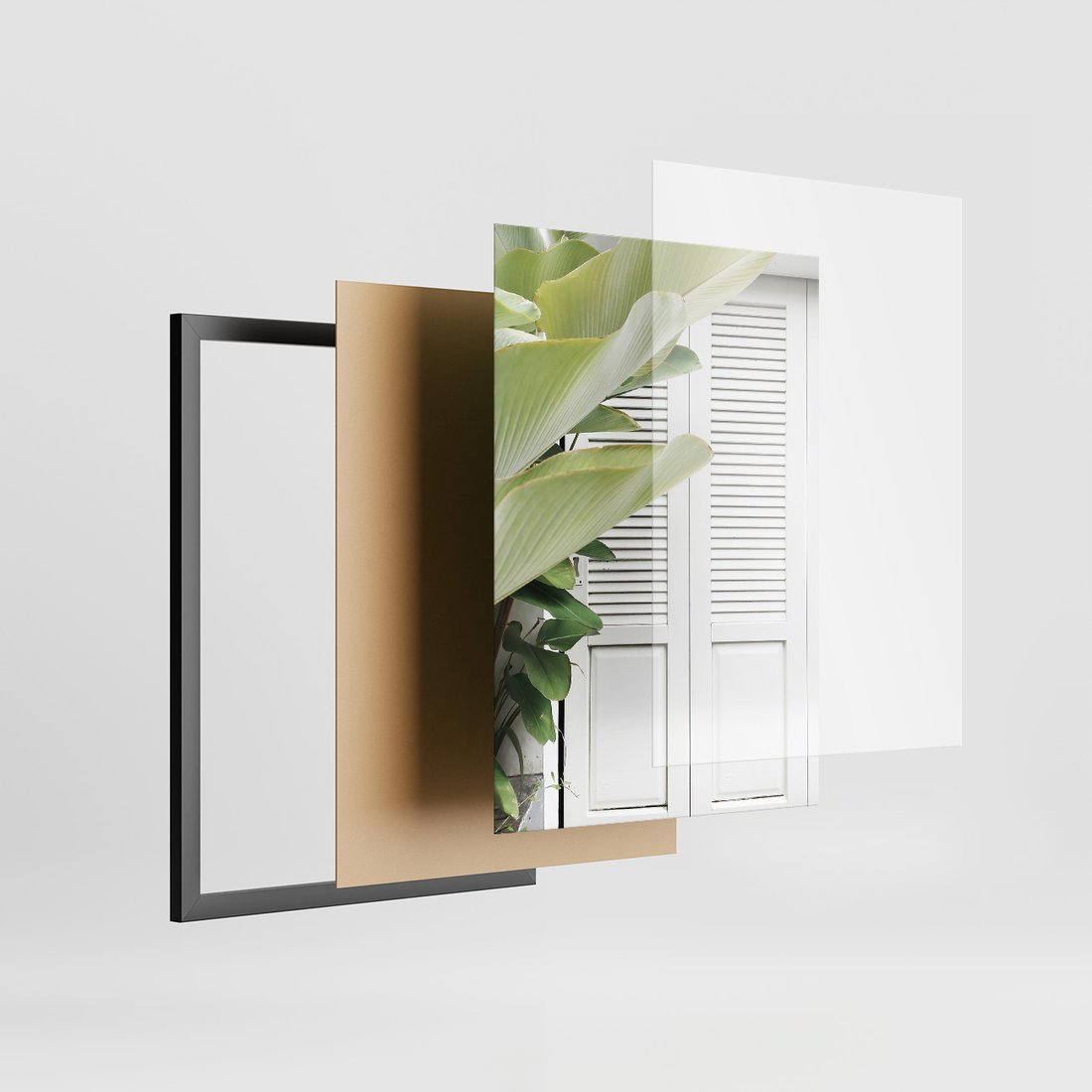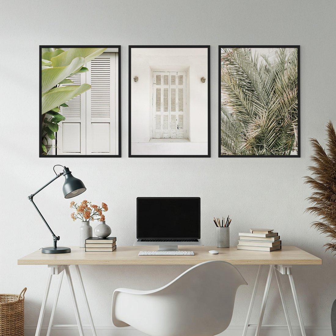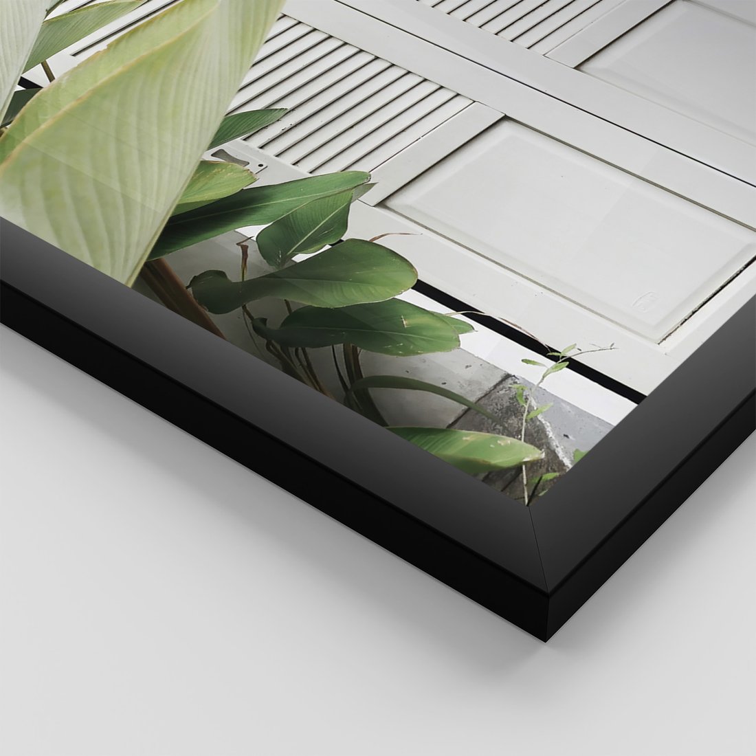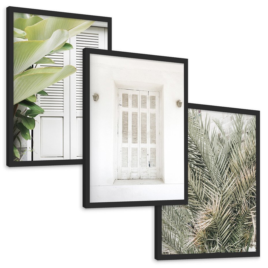 Zestaw obrazy w ramie, plakaty - liście, okno, ściana - rama czarna