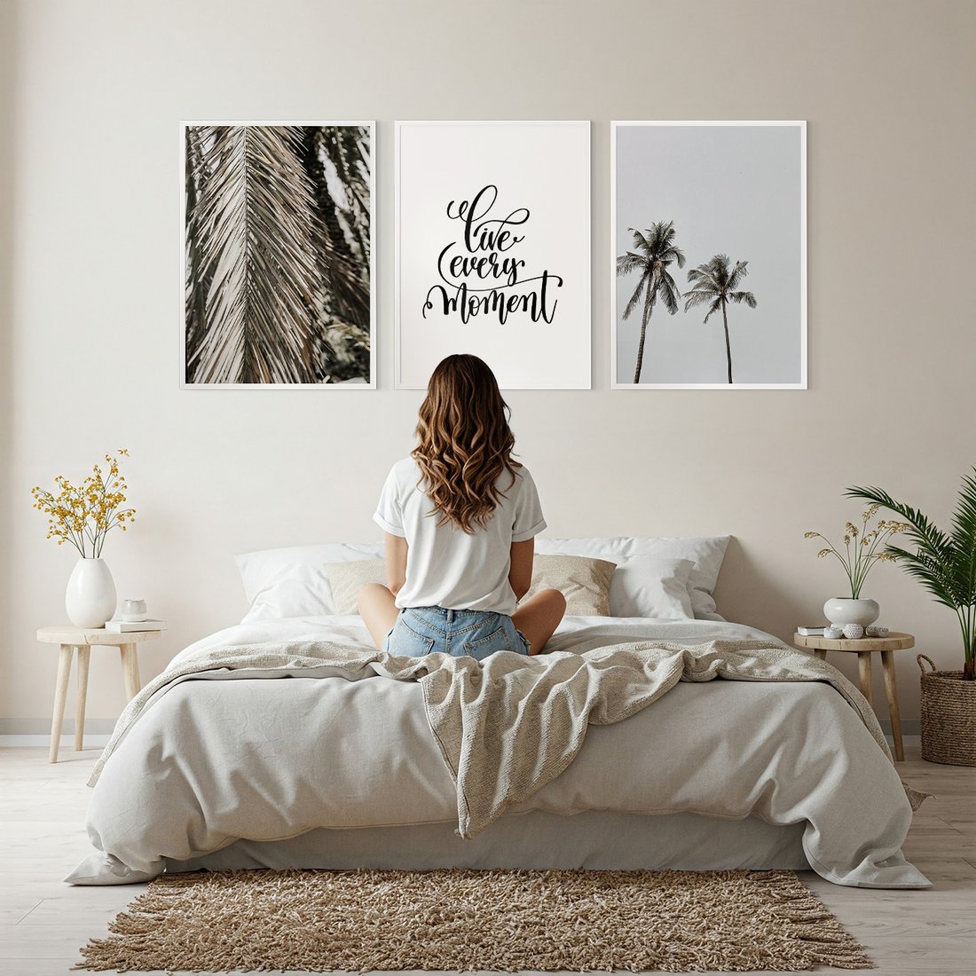 Przenieś piękno sztuki do swojego domu dzięki naszemu starannie skomponowanemu produktowi zestaw obrazów liście, palmy, napisy. Każdy plakat, oprawiony w elegancką ramę, łączy w sobie estetykę i trwałość. Uniwersalne wzornictwo sprawia, że te dekoracje ścienne doskonale komponują się z różnymi stylami wnętrz, od nowoczesnych po klasyczne. Łatwość montażu pozwala na szybką i bezproblemową metamorfozę Twojej przestrzeni. To również idealny pomysł na wyszukany prezent, który z pewnością zachwyci.