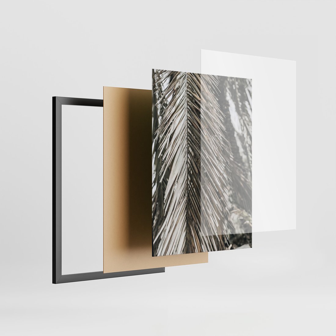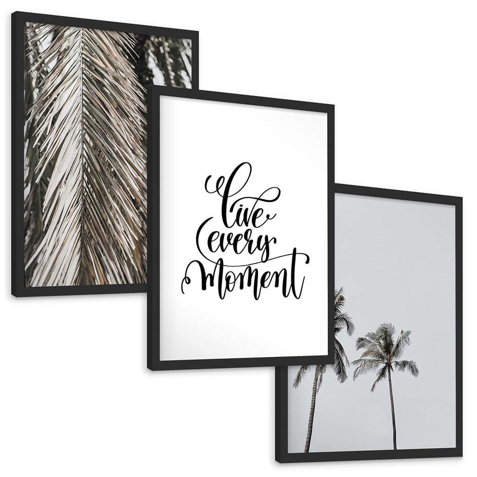 Zestaw obrazy w ramie, plakaty - liście, palmy, napisy - rama czarna