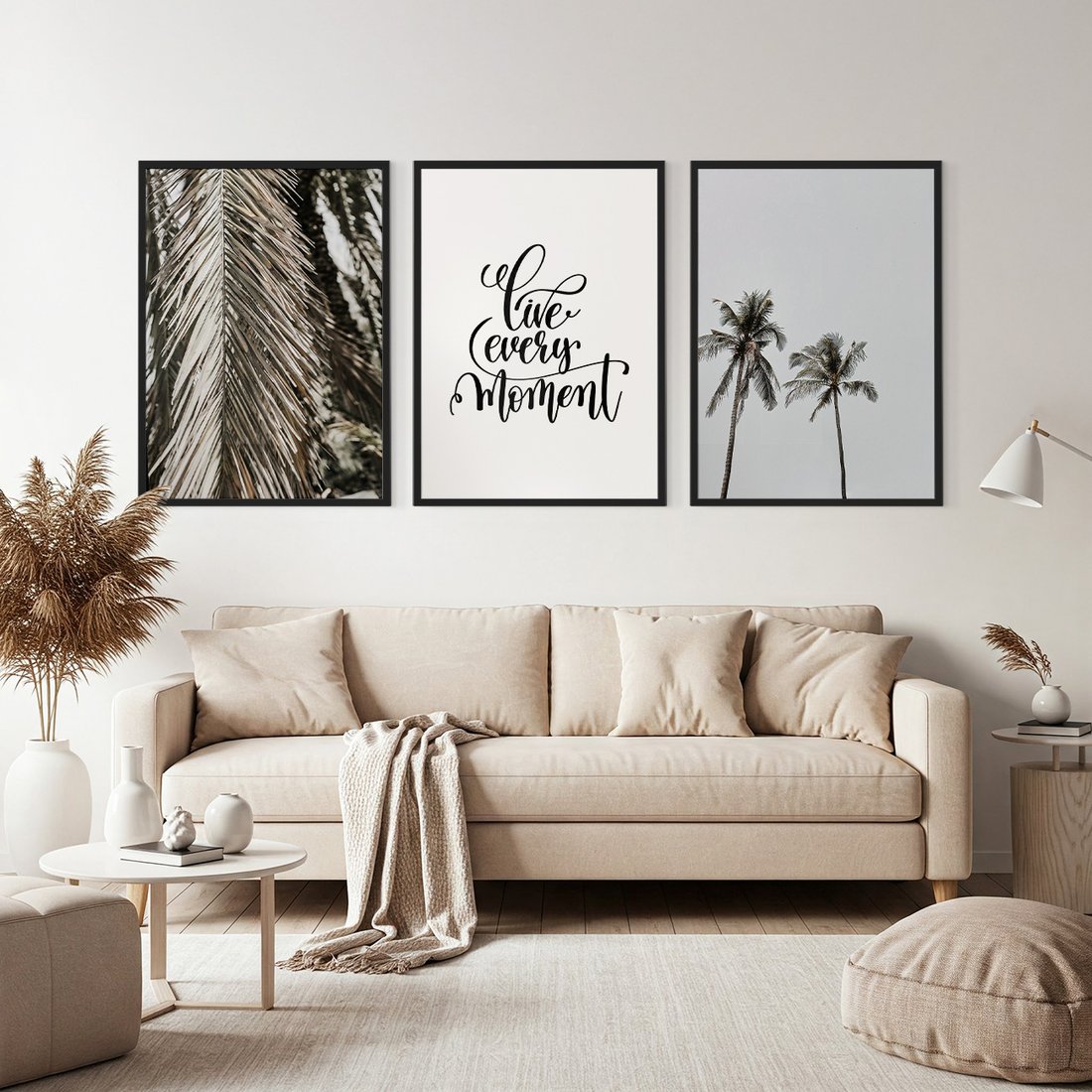 Przenieś piękno sztuki do swojego domu dzięki naszemu starannie skomponowanemu produktowi zestaw obrazów liście, palmy, napisy. Każdy plakat, oprawiony w elegancką ramę, łączy w sobie estetykę i trwałość. Uniwersalne wzornictwo sprawia, że te dekoracje ścienne doskonale komponują się z różnymi stylami wnętrz, od nowoczesnych po klasyczne. Łatwość montażu pozwala na szybką i bezproblemową metamorfozę Twojej przestrzeni. To również idealny pomysł na wyszukany prezent, który z pewnością zachwyci.