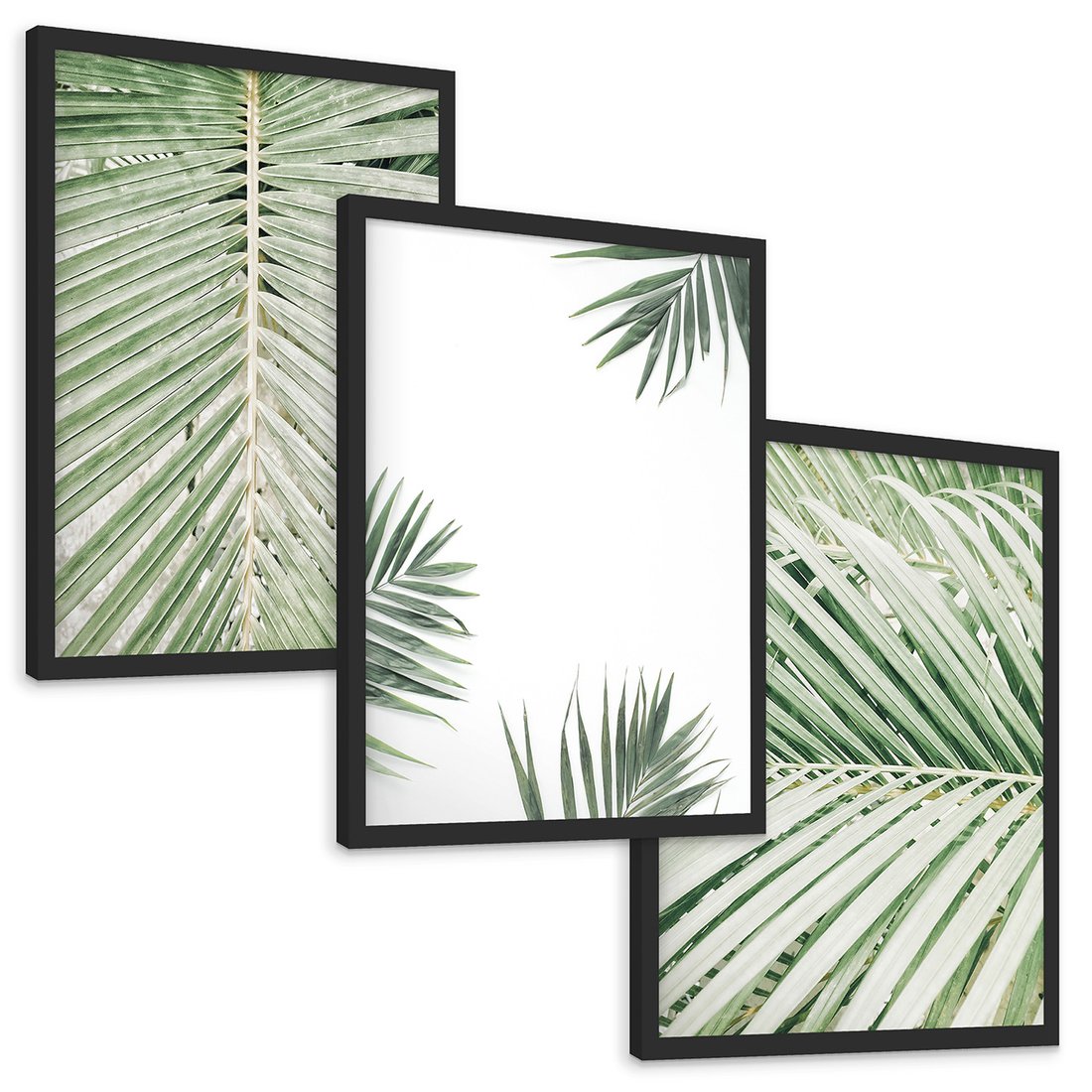 Zestaw obrazy w ramie, plakaty - liście, palmy, tropikalne - rama czarna