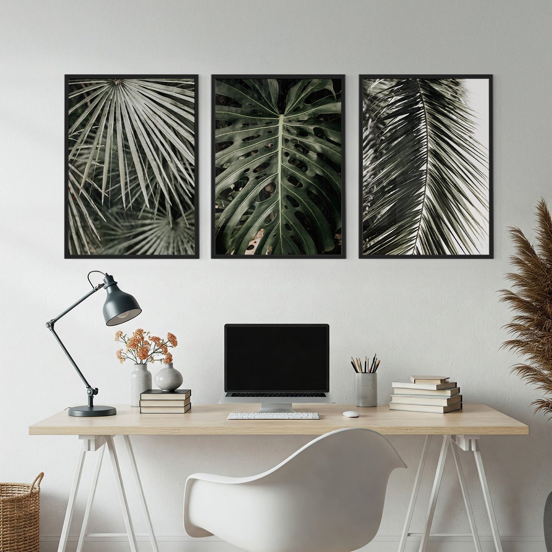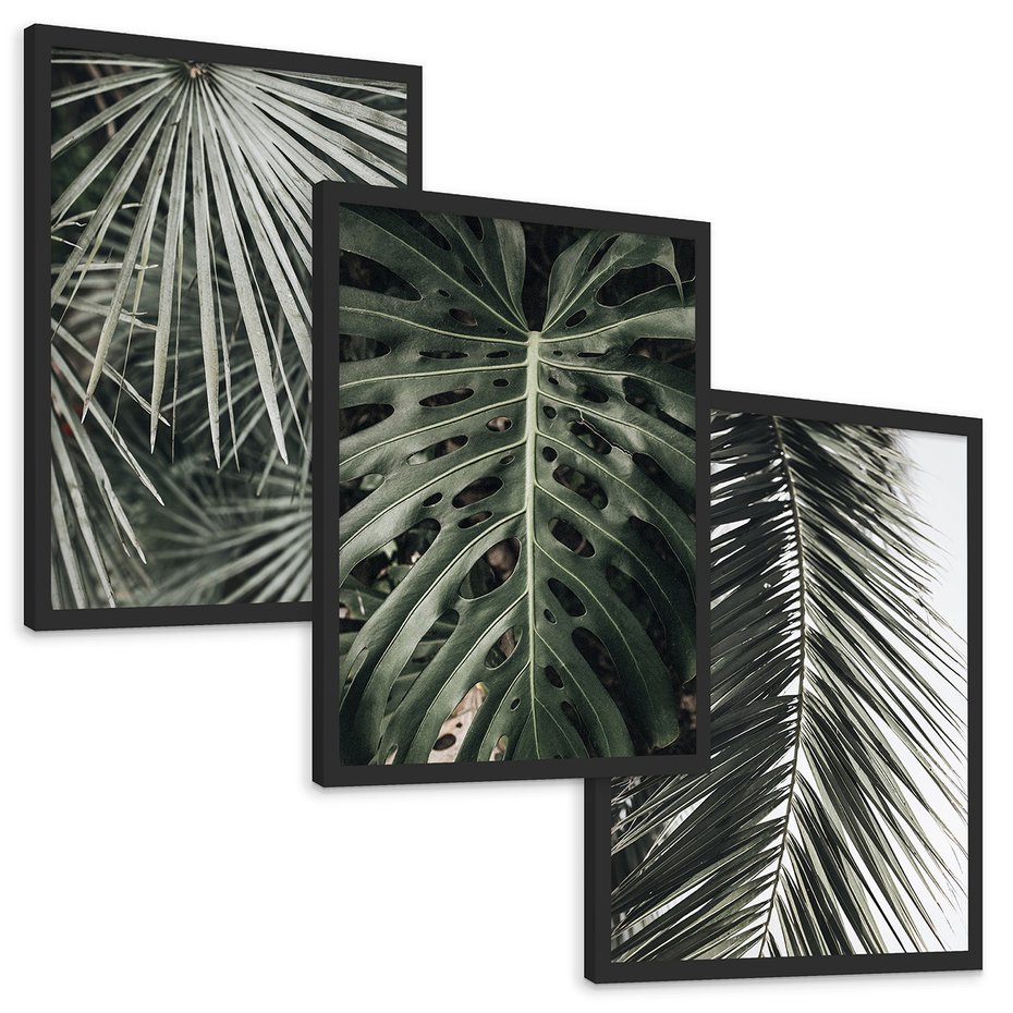 Zestaw obrazy w ramie, plakaty - liście, palmy, tropikalne - rama czarna