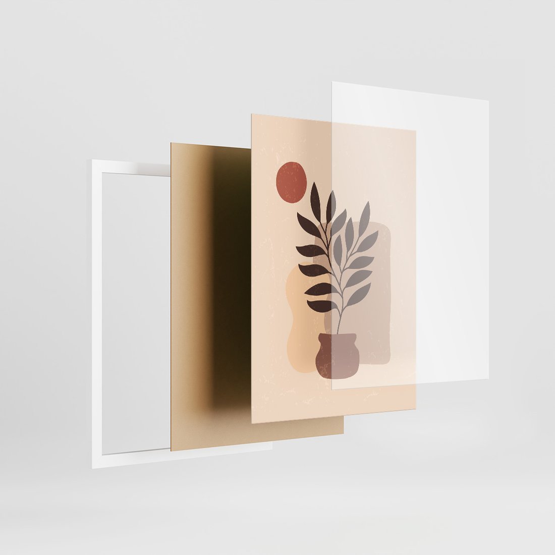 - Zestaw obrazy w ramie, plakaty - liście, roślina, abstrakcja