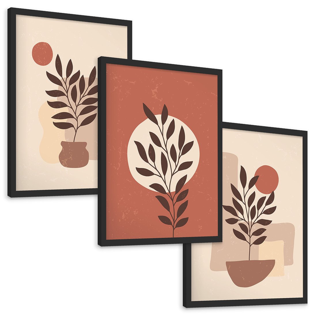 • Zestaw obrazy w ramie, plakaty - liście, roślina, abstrakcja
