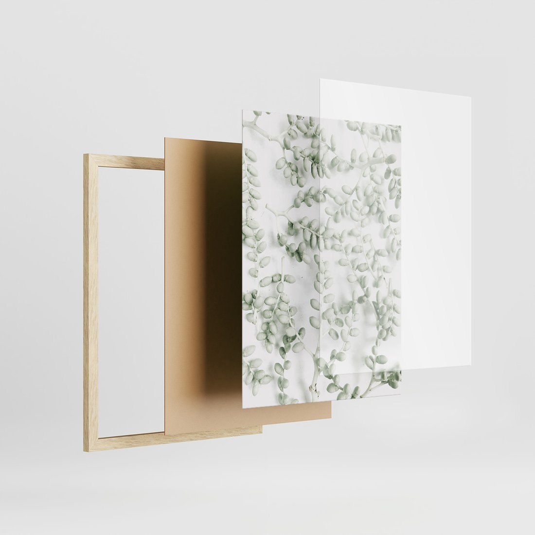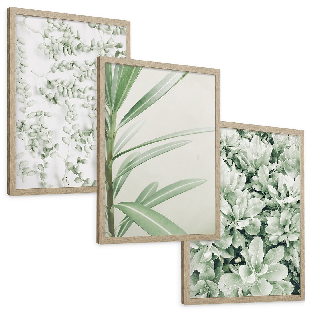 Zestaw obrazy w ramie, plakaty - liście, roślina, gałązka - rama drewno