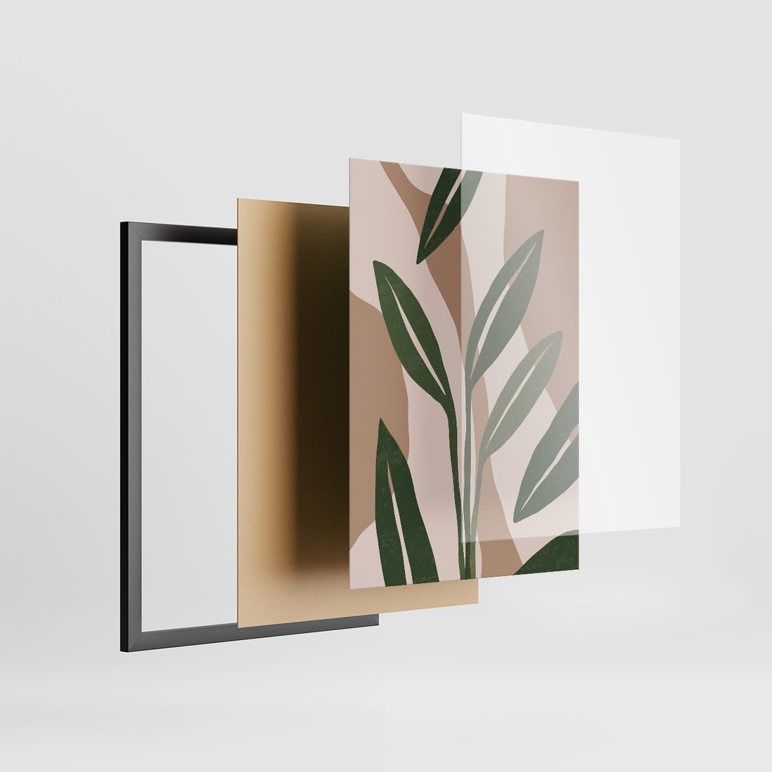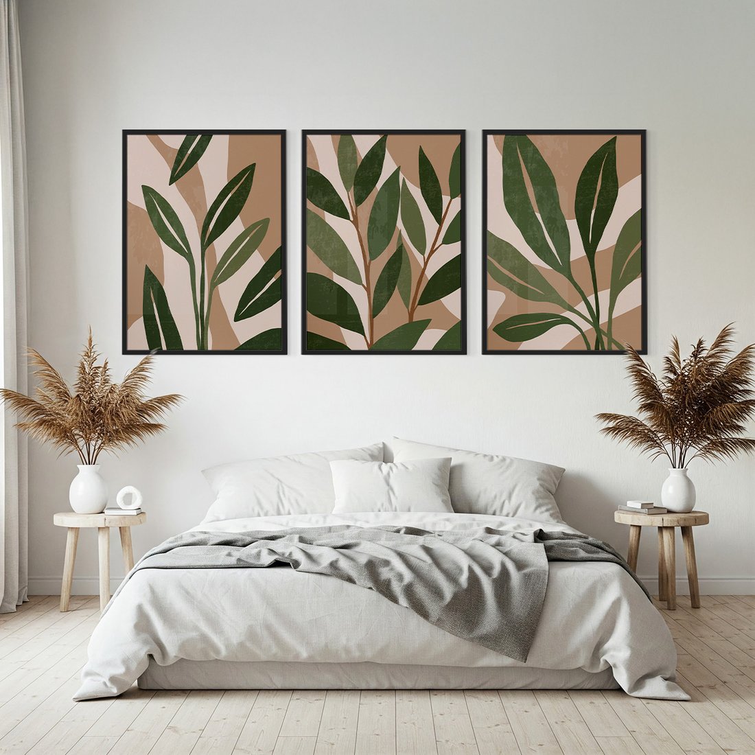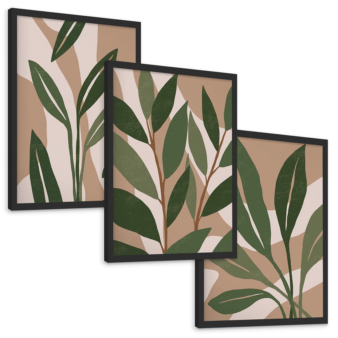 - Zestaw obrazy w ramie, plakaty - liście, rośliny, abstrakcja