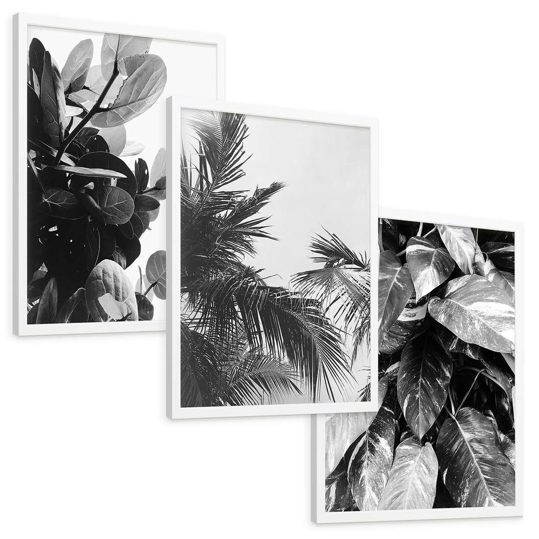 Zestaw obrazy w ramie, plakaty - liście, rośliny, natura - rama biała