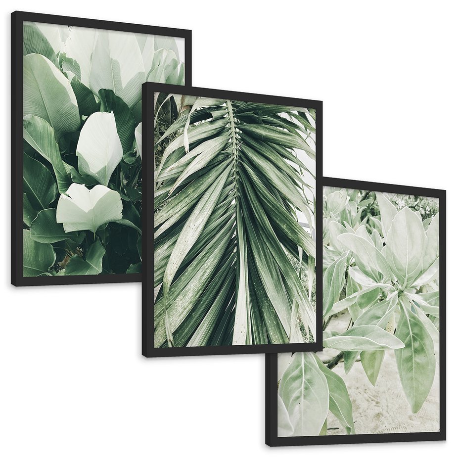 Zestaw obrazy w ramie, plakaty - liście, tropikalne, roślina - rama czarna