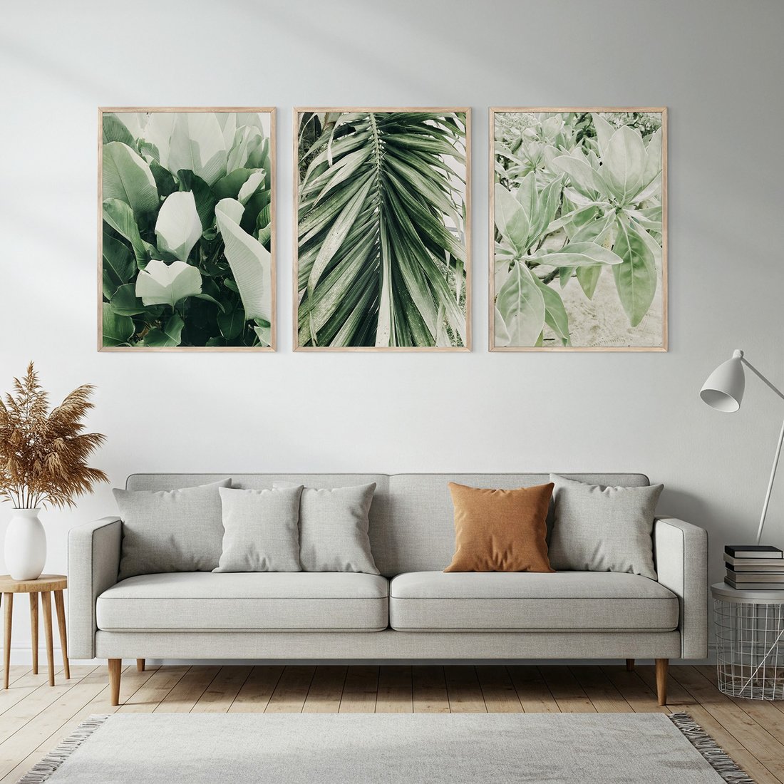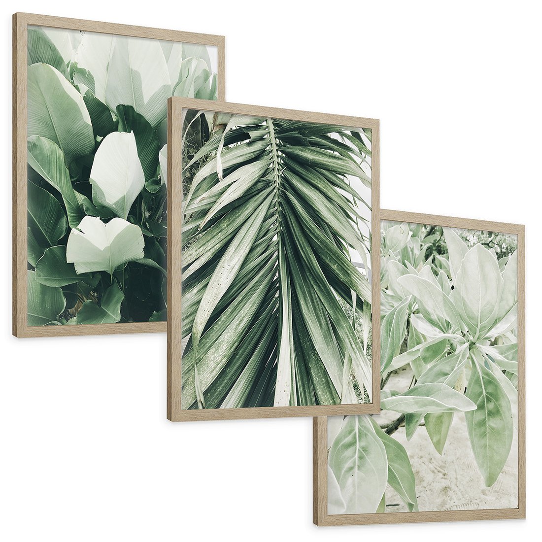 Zestaw obrazy w ramie, plakaty - liście, tropikalne, roślina - rama drewno
