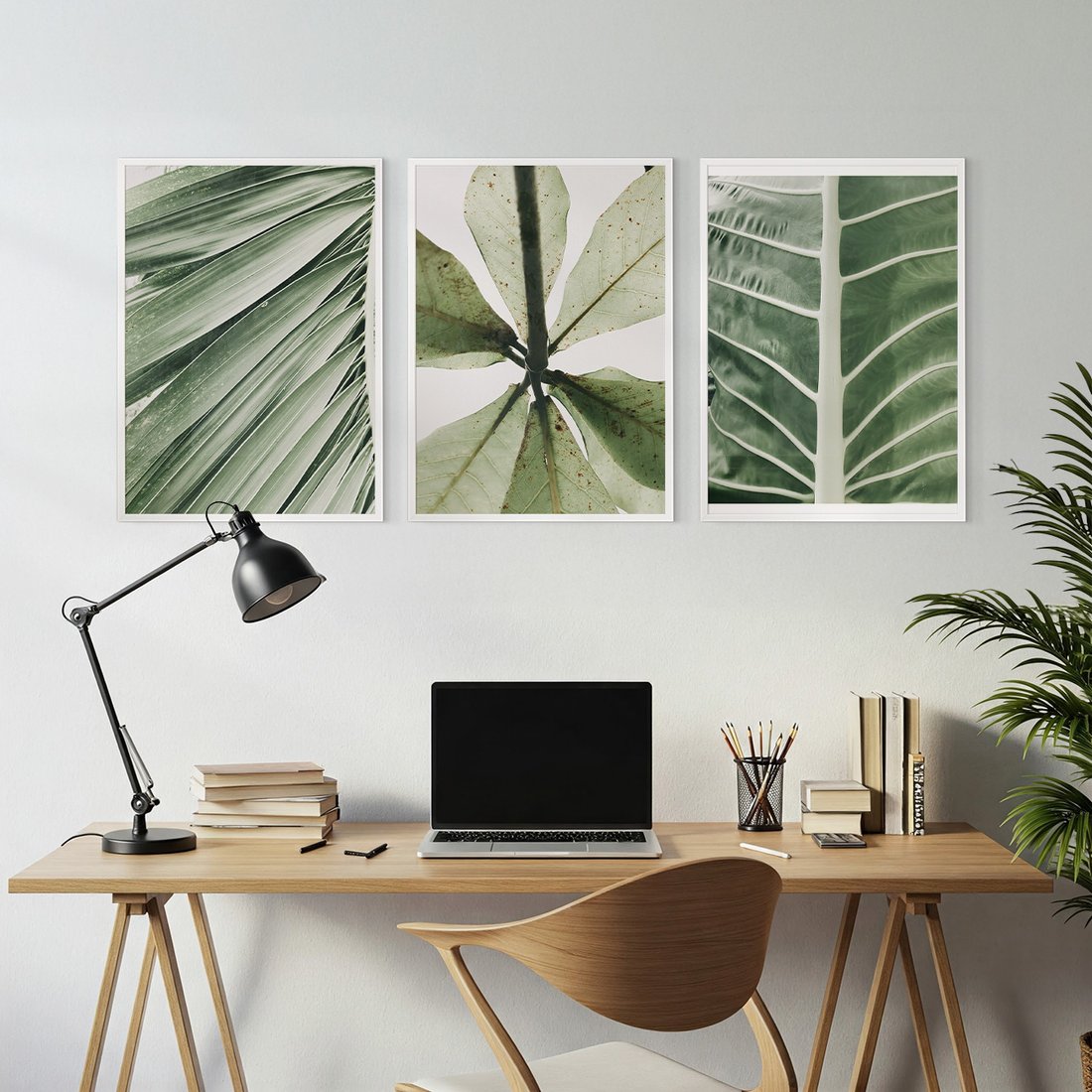 • Zestaw obrazy w ramie, plakaty - liście, tropikalne, zielone