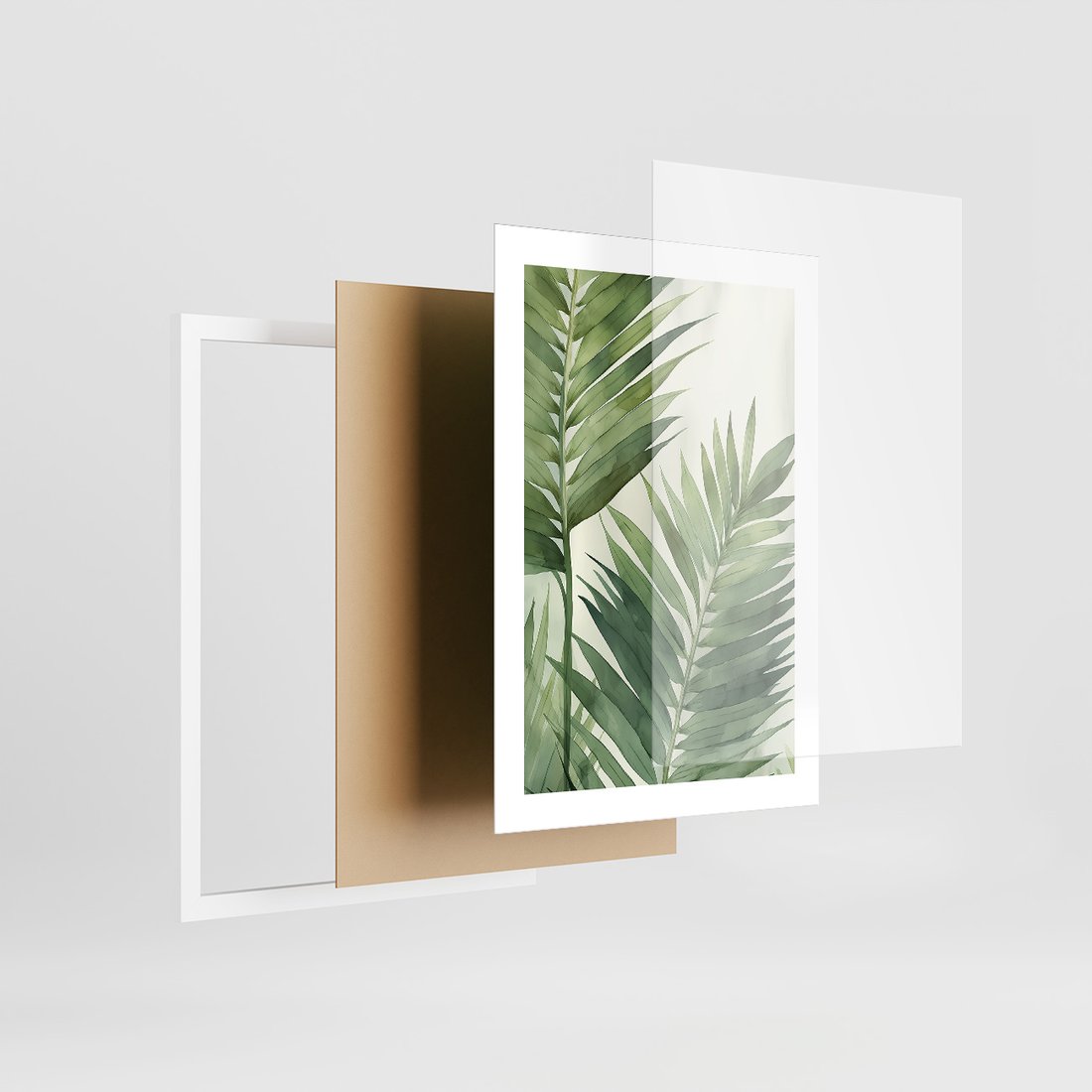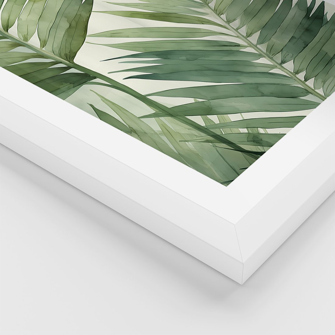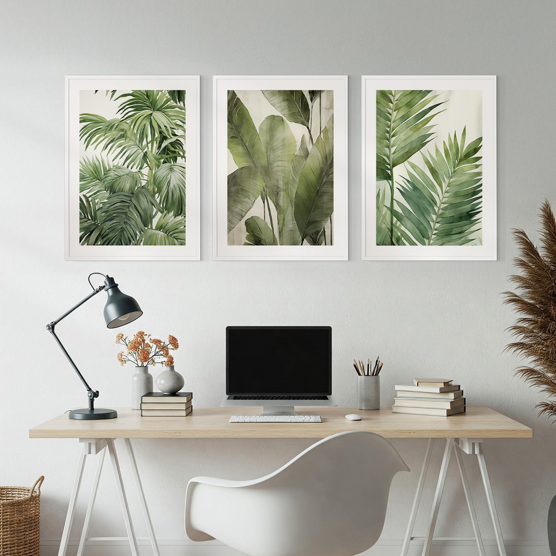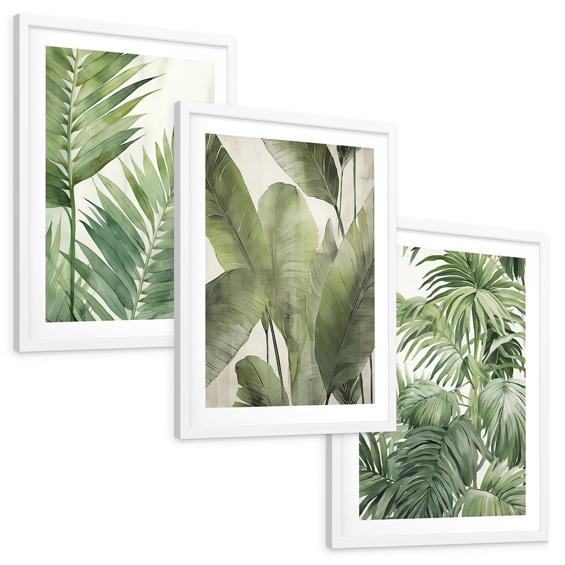 Zestaw obrazy w ramie, plakaty - liście, tropikalny, rośliny - rama biała