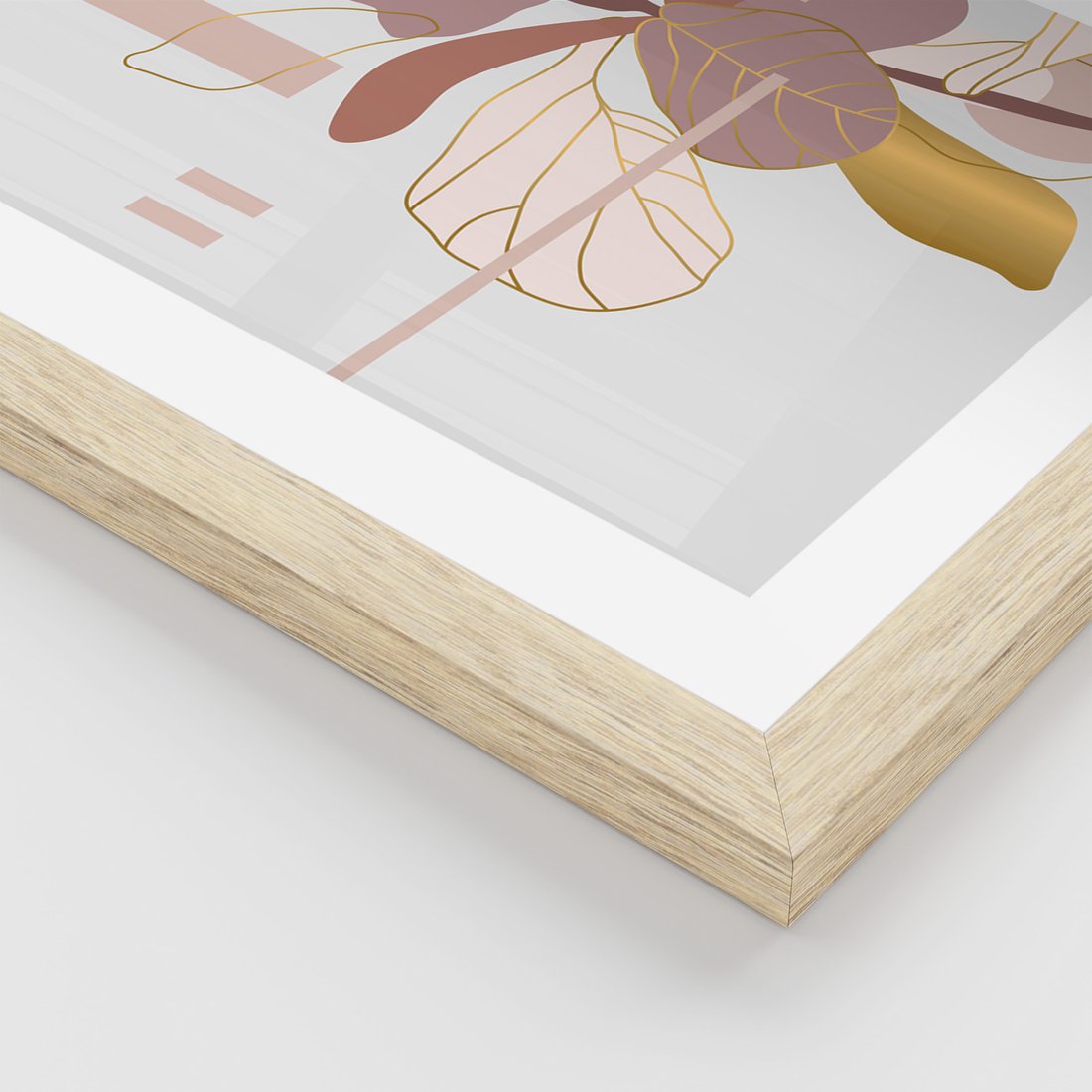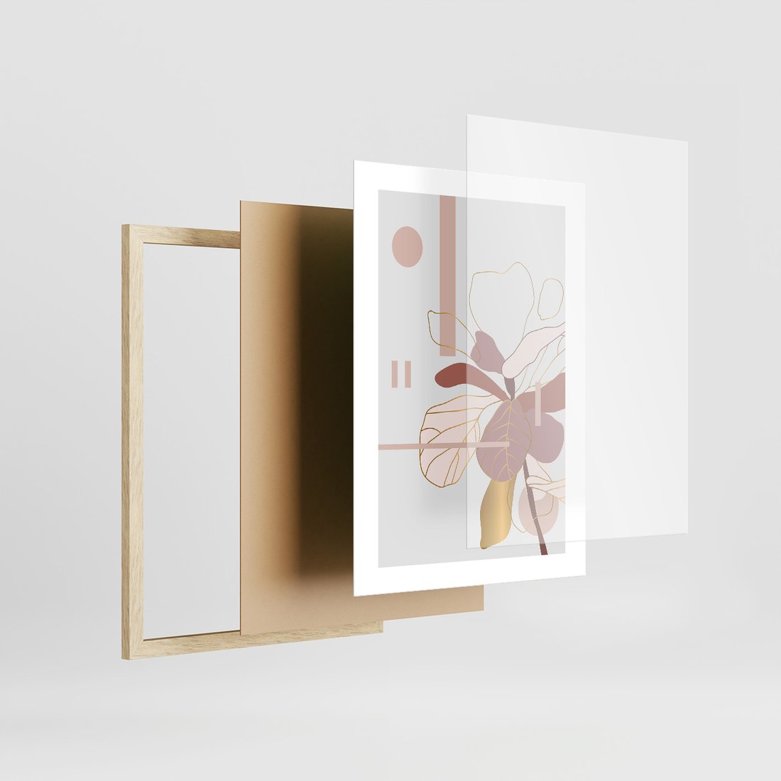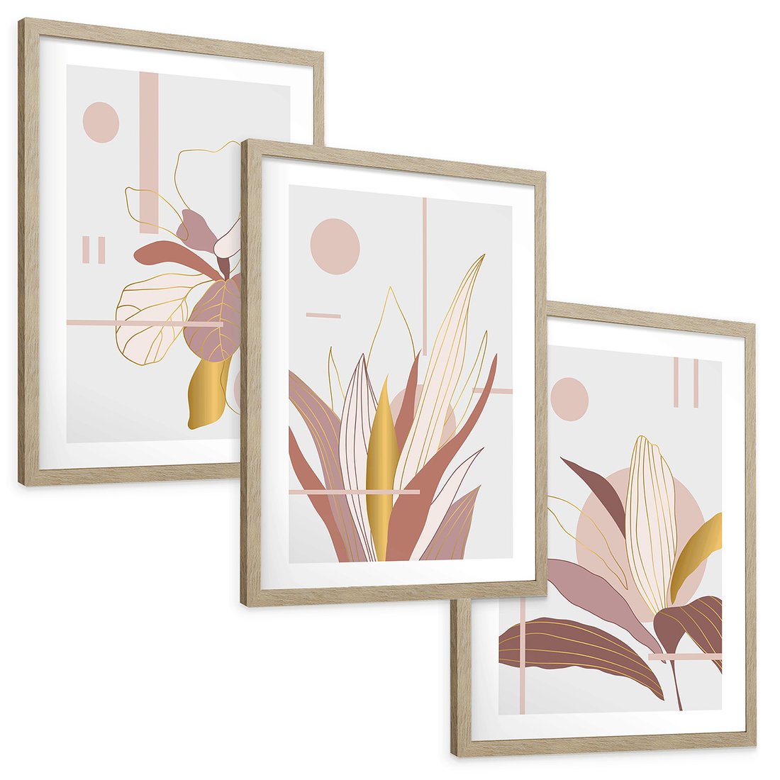Zestaw obrazy w ramie, plakaty - liście, złoto, abstrakcja - rama drewno