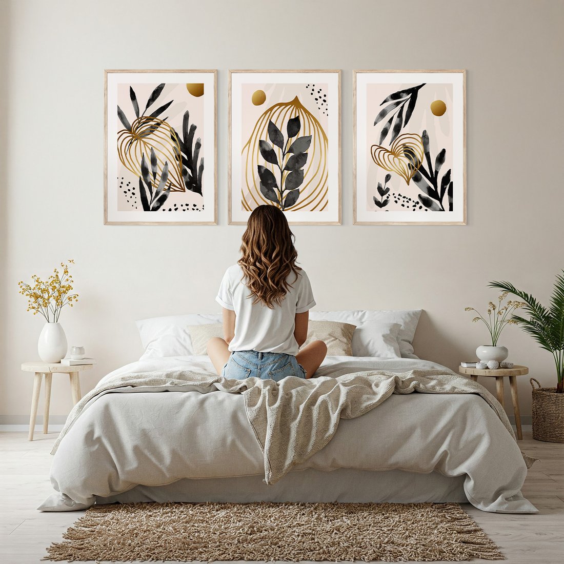 Przenieś piękno sztuki do swojego domu dzięki naszemu starannie skomponowanemu produktowi zestaw obrazów liście, złoto, abstrakcja. Każdy plakat, oprawiony w elegancką ramę, łączy w sobie estetykę i trwałość. Uniwersalne wzornictwo sprawia, że te dekoracje ścienne doskonale komponują się z różnymi stylami wnętrz, od nowoczesnych po klasyczne. Łatwość montażu pozwala na szybką i bezproblemową metamorfozę Twojej przestrzeni. To również idealny pomysł na wyszukany prezent, który z pewnością zachwyci.