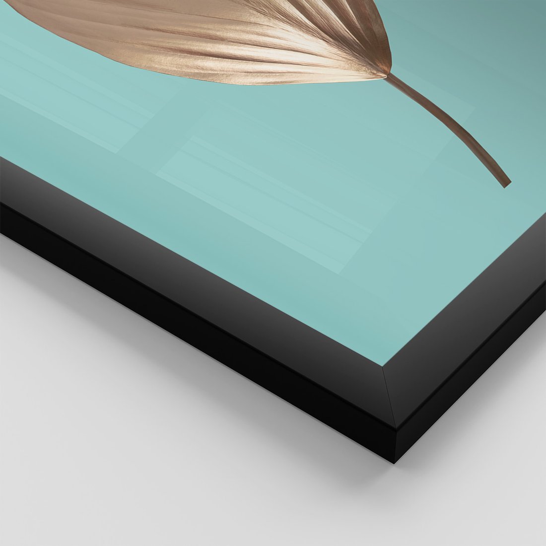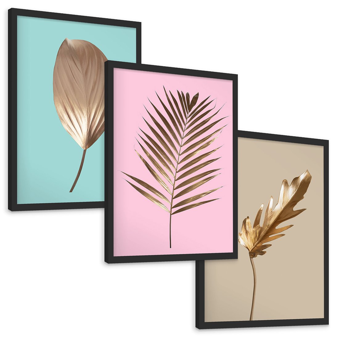 Zestaw obrazy w ramie, plakaty - liście, złoto, roślina - rama czarna