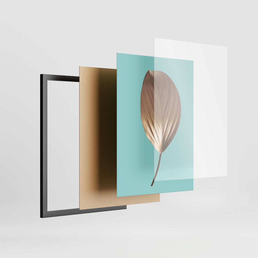 - Zestaw obrazy w ramie, plakaty - liście, złoto, roślina