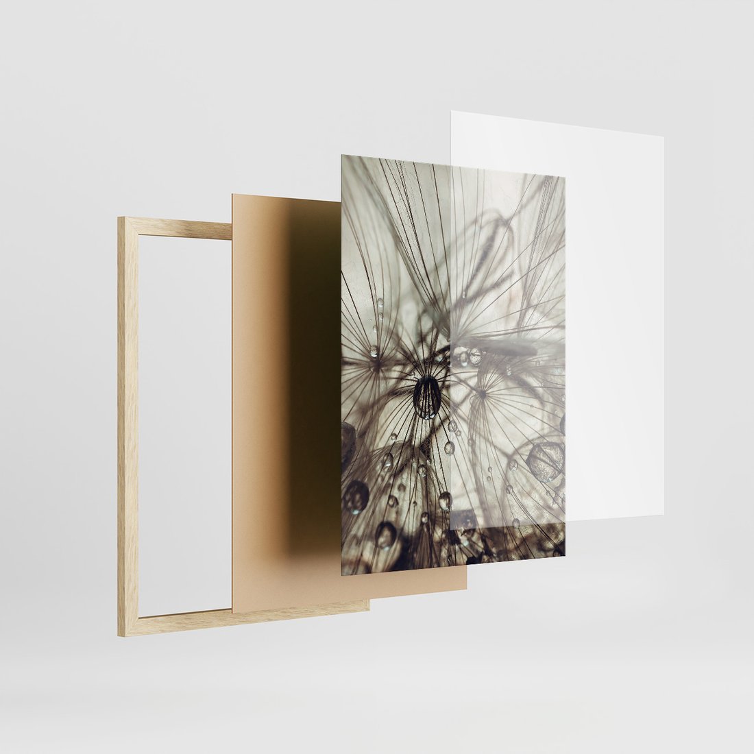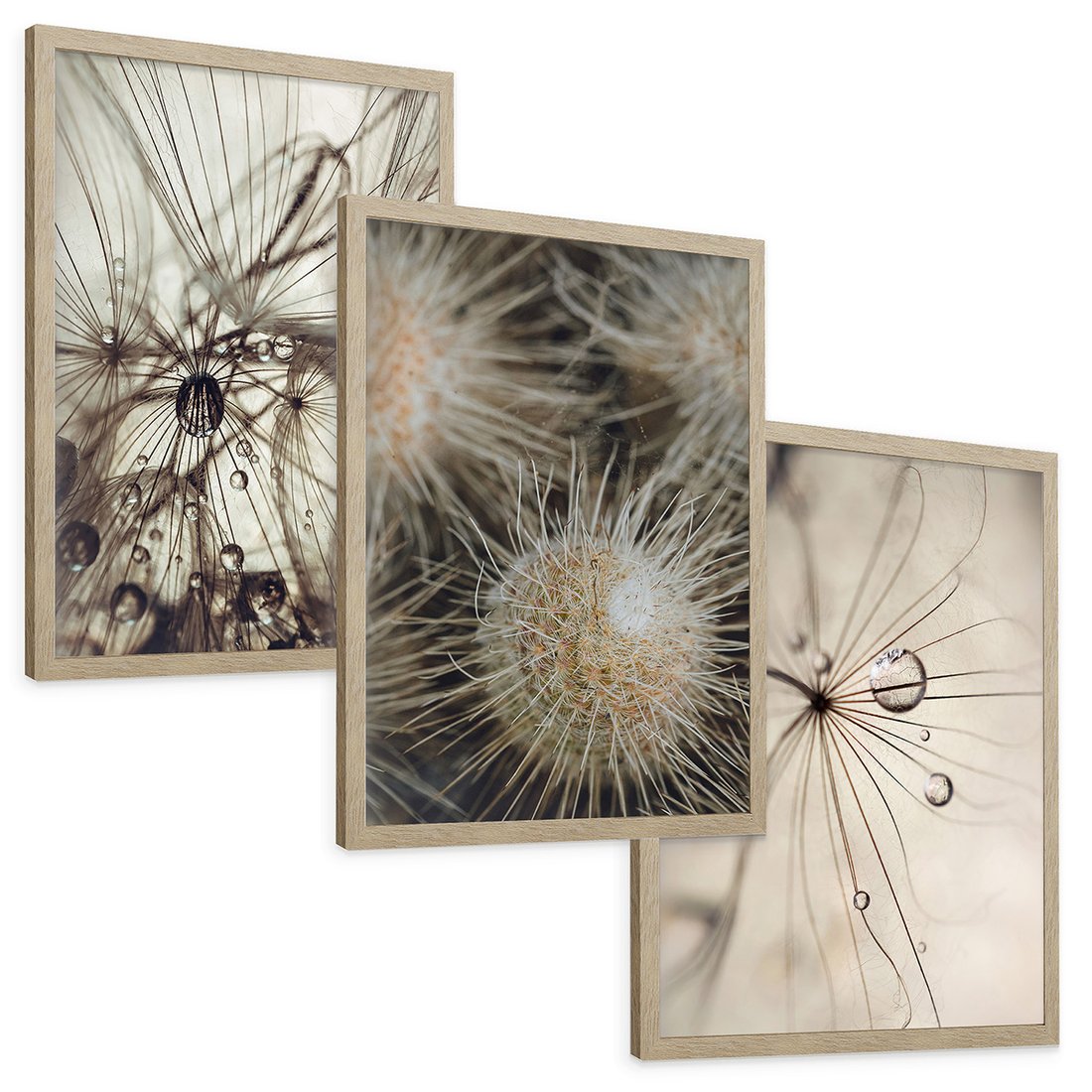 Zestaw obrazy w ramie, plakaty - makro, natura, roślina - rama drewno