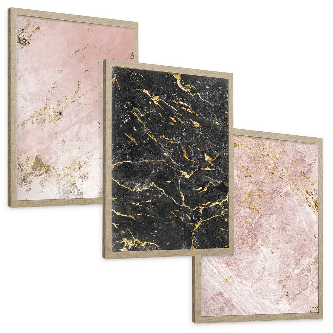 • Zestaw obrazy w ramie, plakaty - marmur, tekstura, złoto