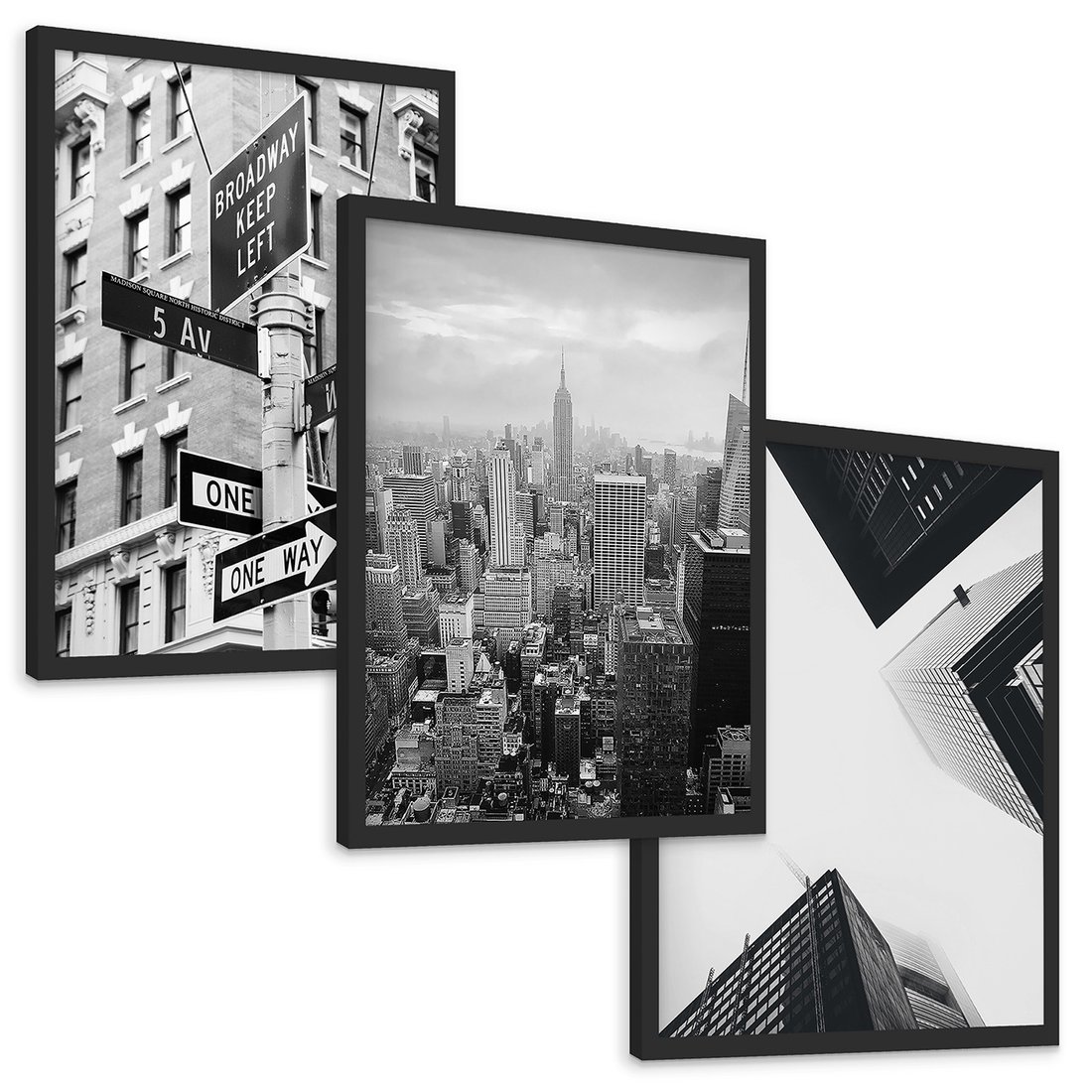 Zestaw obrazy w ramie, plakaty - miasto, architektura, budynki - rama czarna