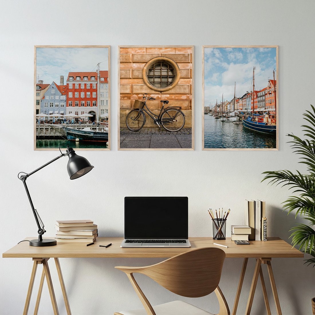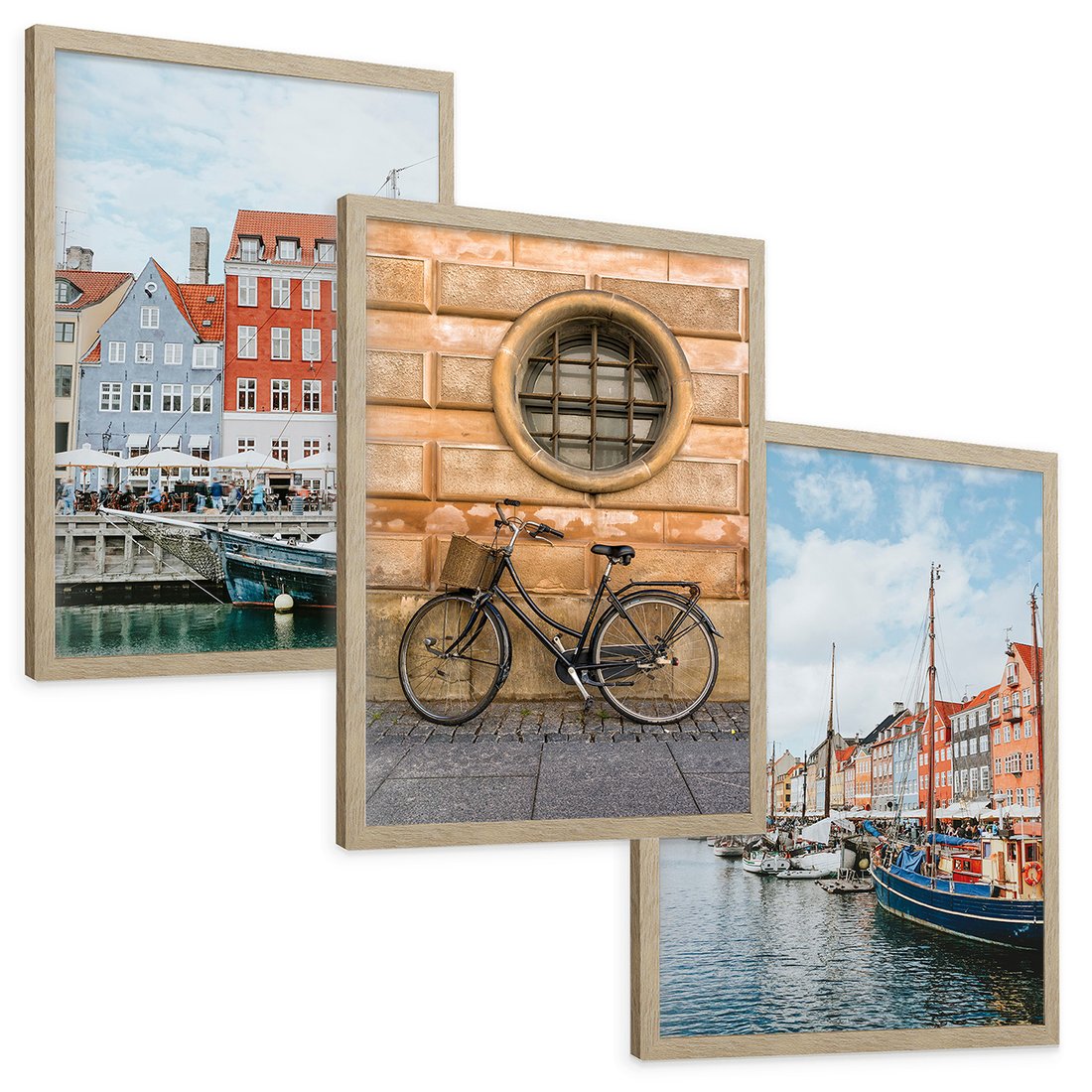 Zestaw obrazy w ramie, plakaty - miasto, budynki, kanał - rama drewno