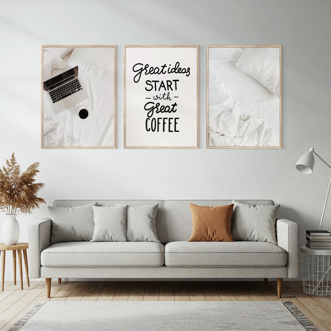 • Zestaw obrazy w ramie, plakaty - minimalizm, kawa, laptop