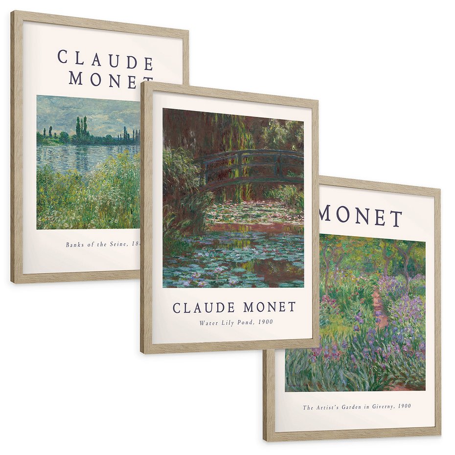 Zestaw obrazy w ramie, plakaty - Monet, Impresjonizm, Natura - rama drewno