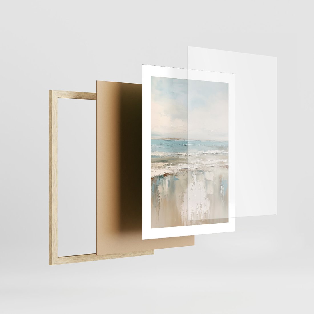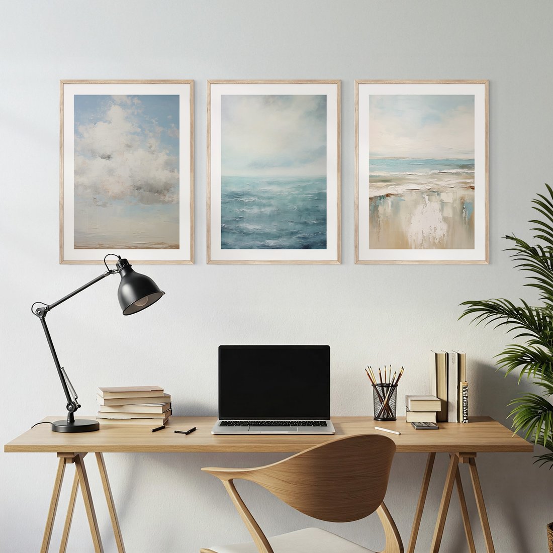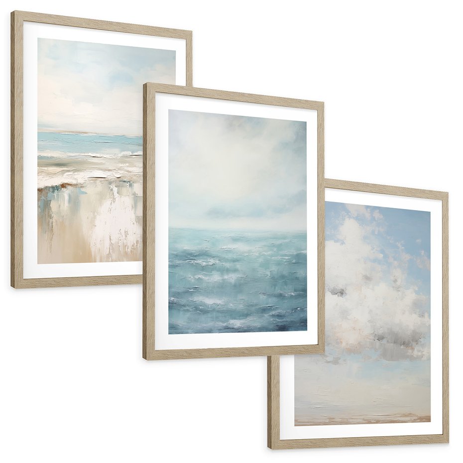Zestaw obrazy w ramie, plakaty - morze, chmury, abstrakcja - rama drewno