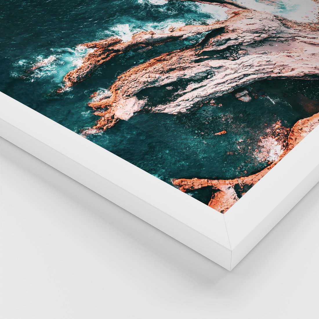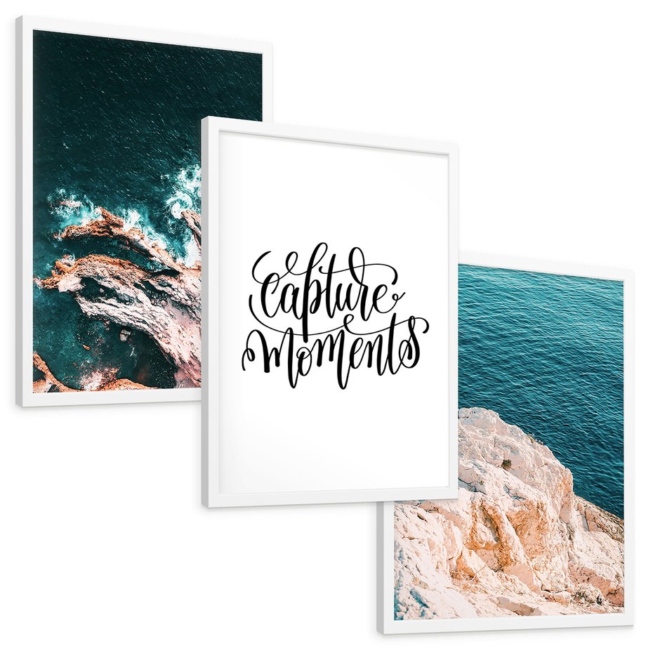 Zestaw obrazy w ramie, plakaty - morze, skały, ocean - rama biała