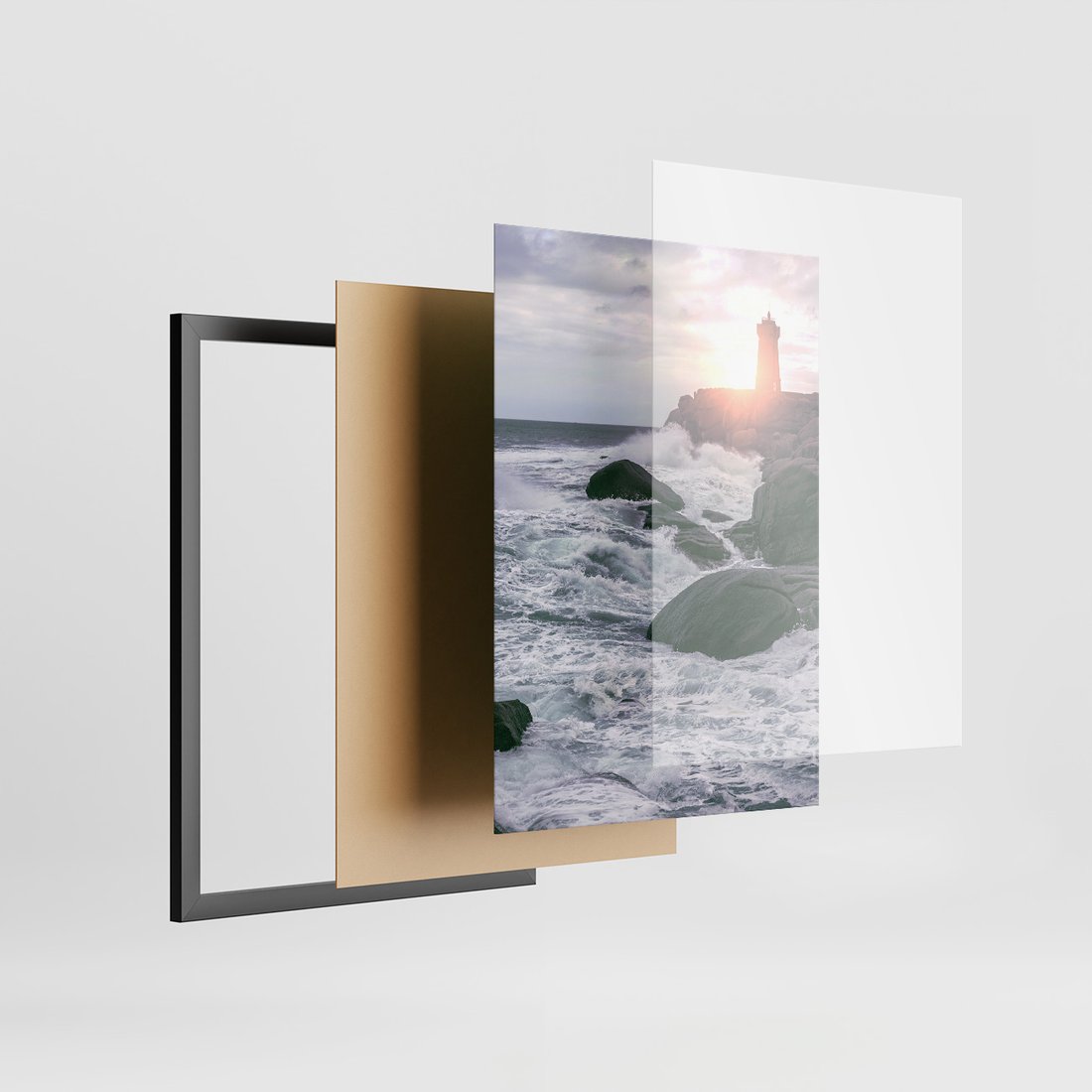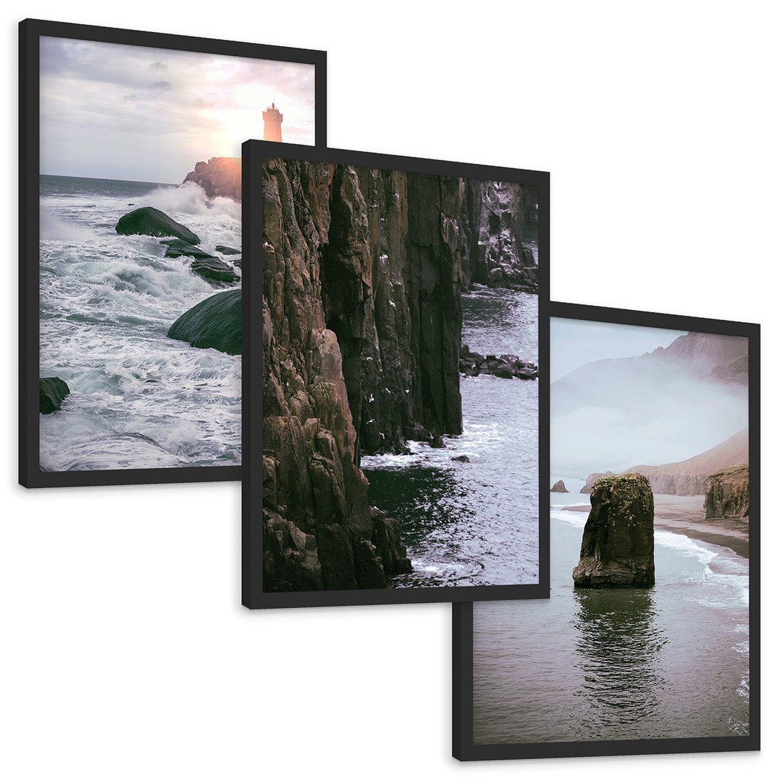 Zestaw obrazy w ramie, plakaty - morze, skały, wybrzeże - rama czarna