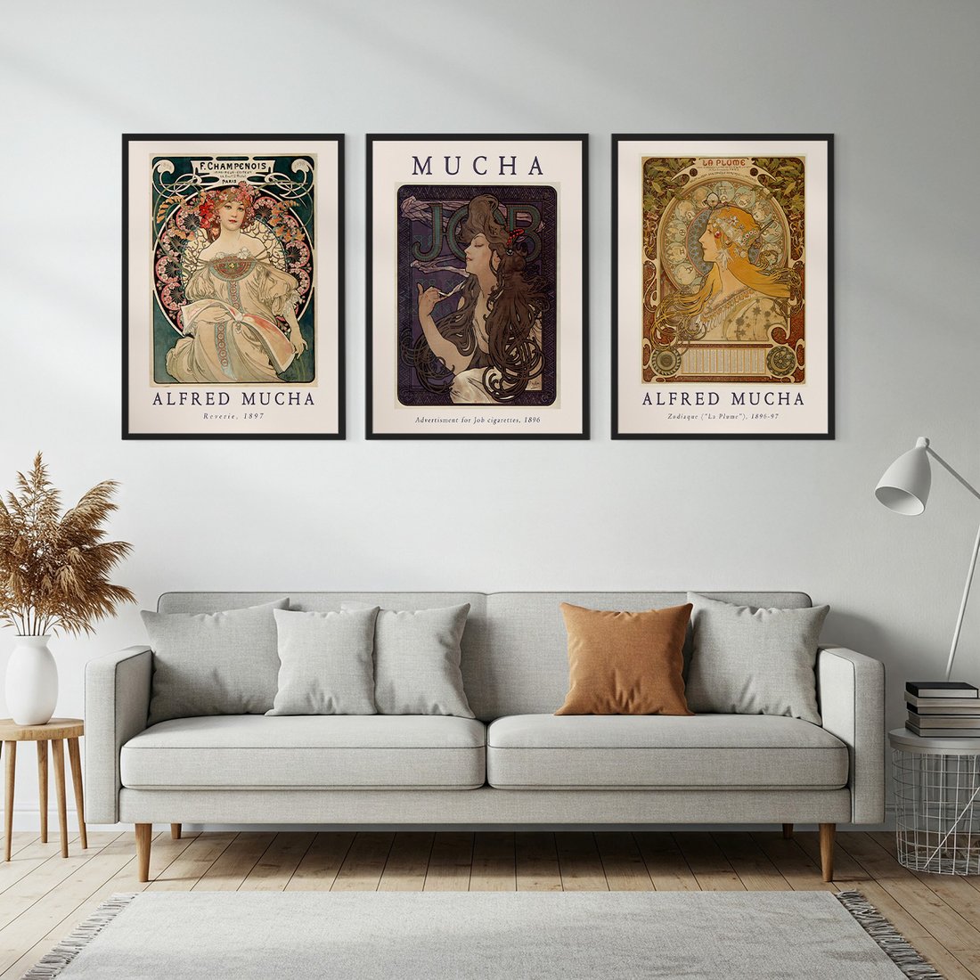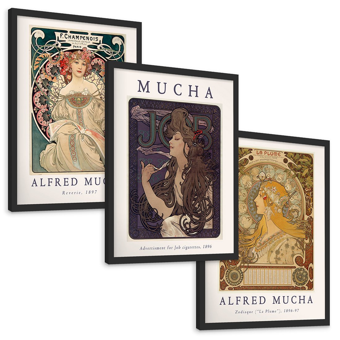 Zestaw obrazy w ramie, plakaty - Mucha, secesja, artystyczne - rama czarna