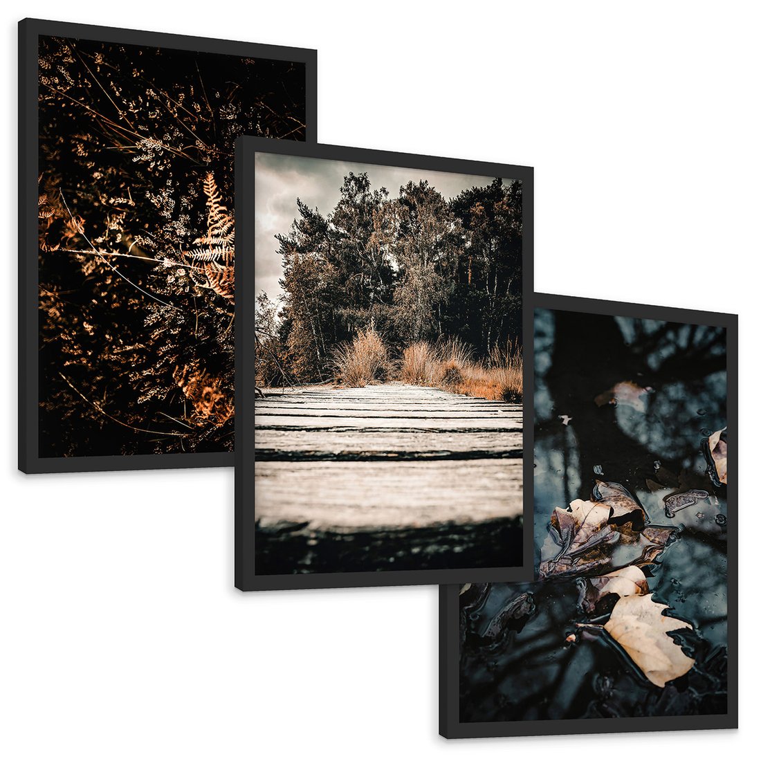 Zestaw obrazy w ramie, plakaty - natura, liście, drzewa - rama czarna