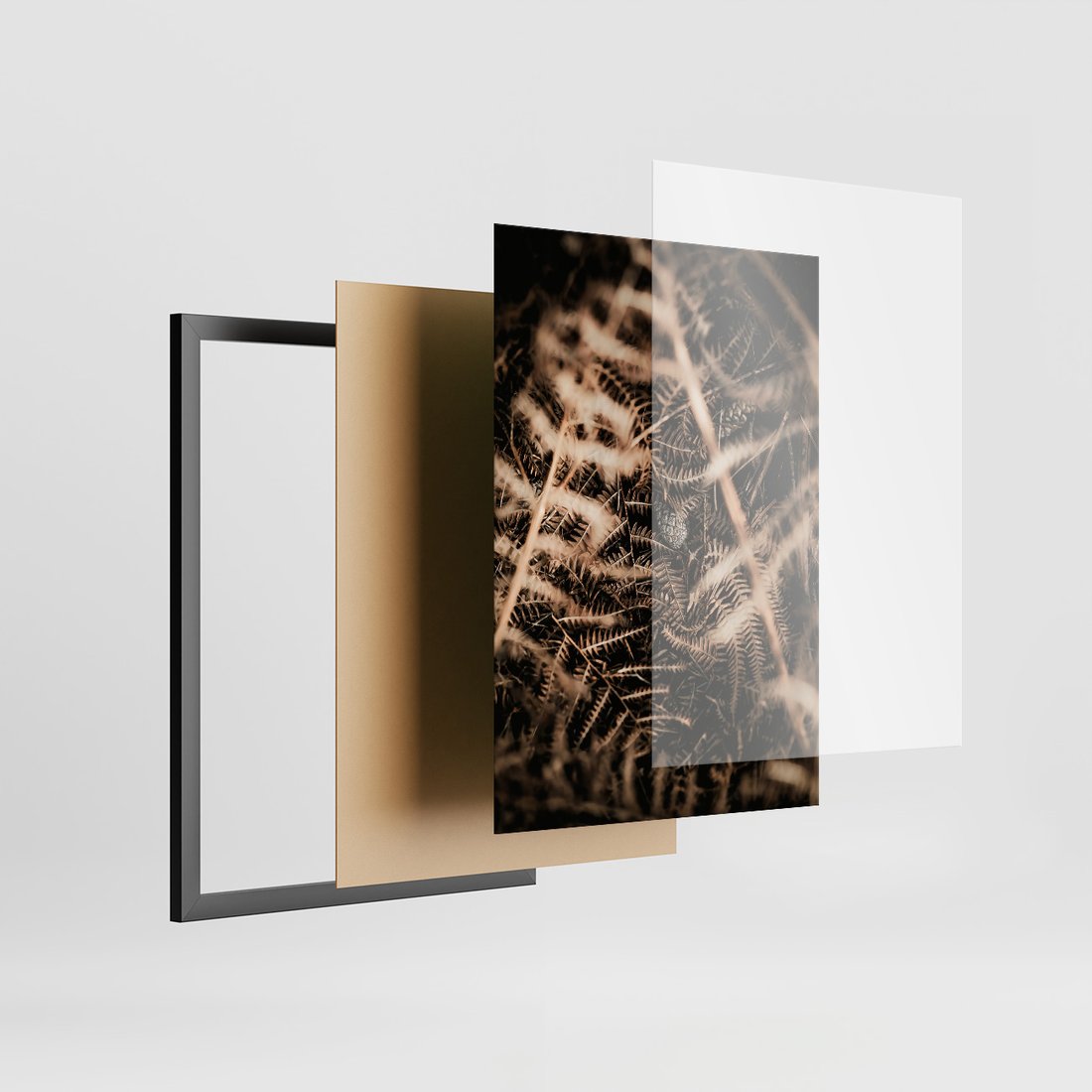 Zestaw obrazy w ramie, plakaty - natura, liście, góry - rama czarna