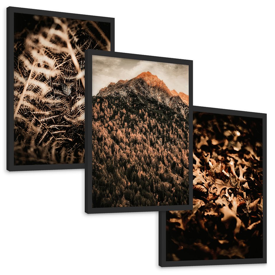 - Zestaw obrazy w ramie, plakaty - natura, liście, góry