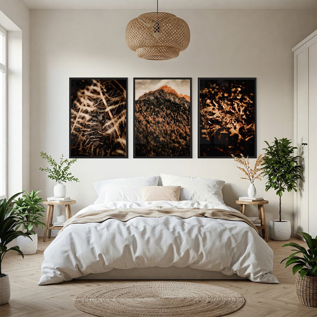 Przenieś piękno sztuki do swojego domu dzięki naszemu starannie skomponowanemu produktowi zestaw obrazów natura, liście, góry. Każdy plakat, oprawiony w elegancką ramę, łączy w sobie estetykę i trwałość. Uniwersalne wzornictwo sprawia, że te dekoracje ścienne doskonale komponują się z różnymi stylami wnętrz, od nowoczesnych po klasyczne. Łatwość montażu pozwala na szybką i bezproblemową metamorfozę Twojej przestrzeni. To również idealny pomysł na wyszukany prezent, który z pewnością zachwyci.