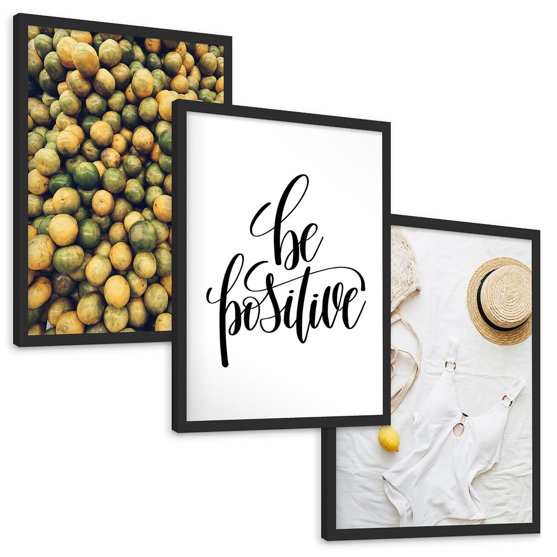 Zestaw obrazy w ramie, plakaty - owoce, cytryny, pozytywne - rama czarna