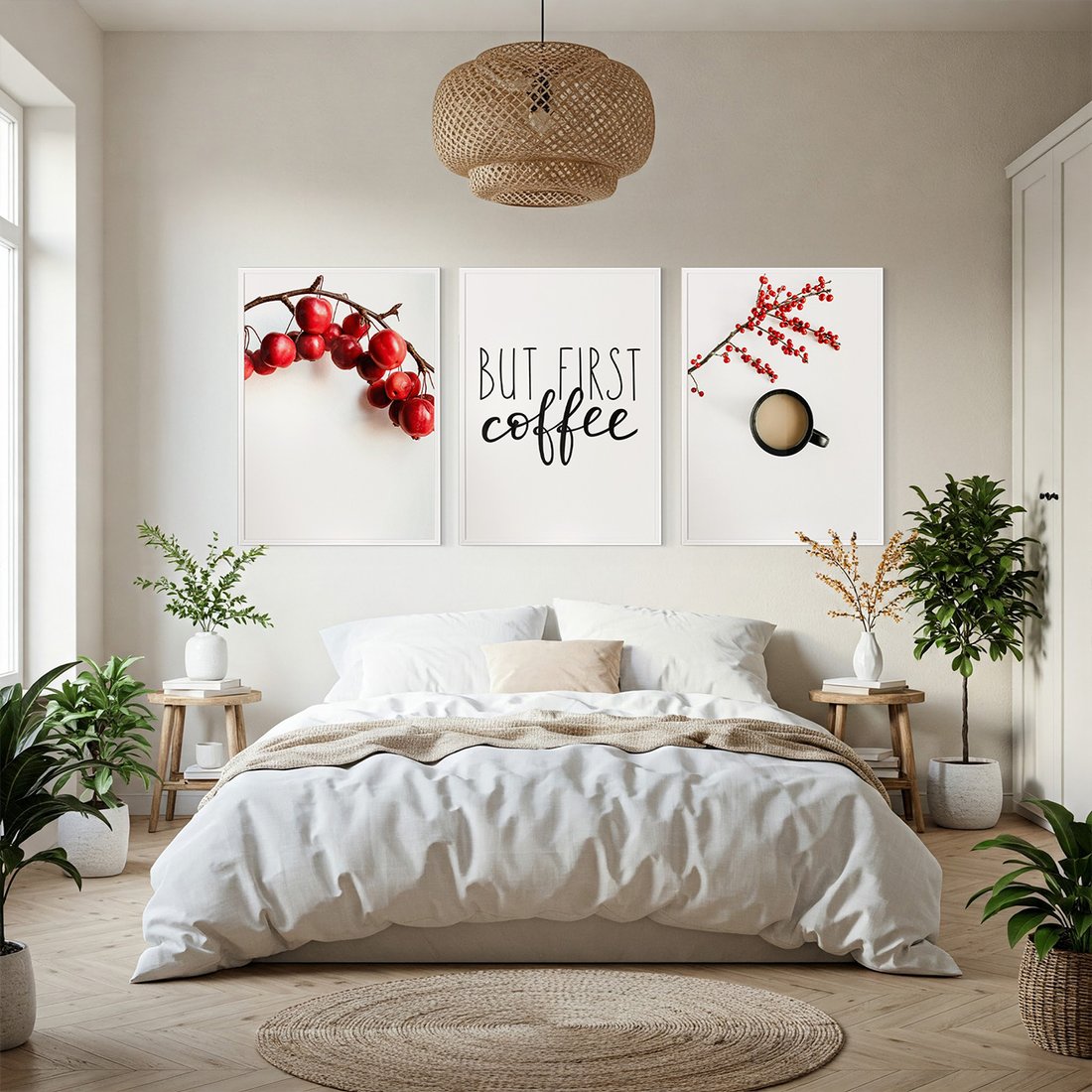 Przenieś piękno sztuki do swojego domu dzięki naszemu starannie skomponowanemu produktowi zestaw obrazów owoce, kawa, gałązka. Każdy plakat, oprawiony w elegancką ramę, łączy w sobie estetykę i trwałość. Uniwersalne wzornictwo sprawia, że te dekoracje ścienne doskonale komponują się z różnymi stylami wnętrz, od nowoczesnych po klasyczne. Łatwość montażu pozwala na szybką i bezproblemową metamorfozę Twojej przestrzeni. To również idealny pomysł na wyszukany prezent, który z pewnością zachwyci.