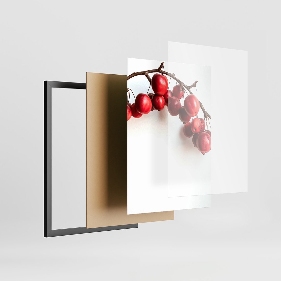 Zestaw obrazy w ramie, plakaty - owoce, kawa, gałązka - rama czarna