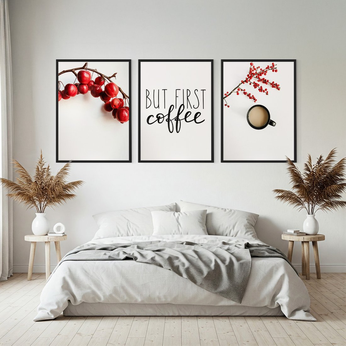 - Zestaw obrazy w ramie, plakaty - owoce, kawa, gałązka