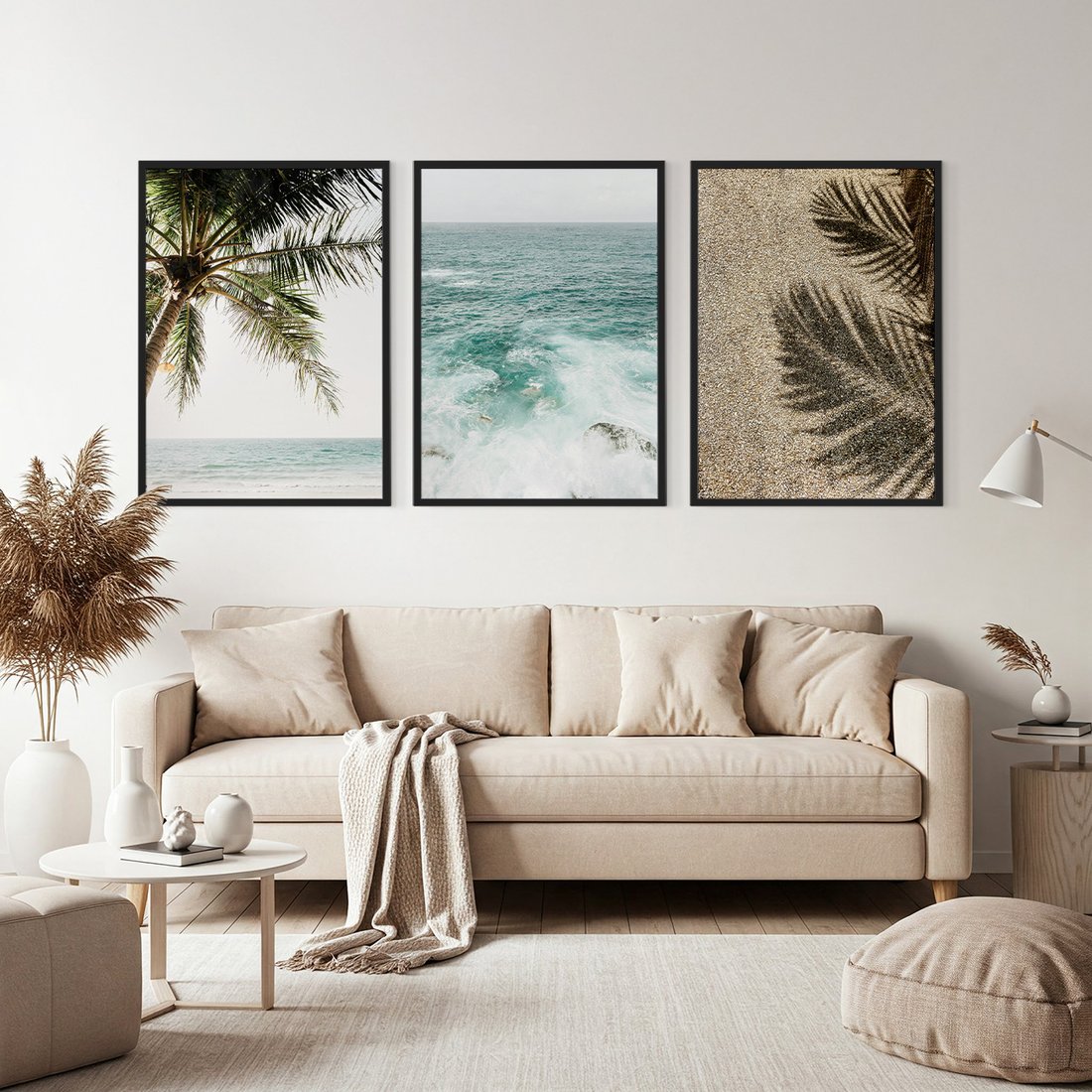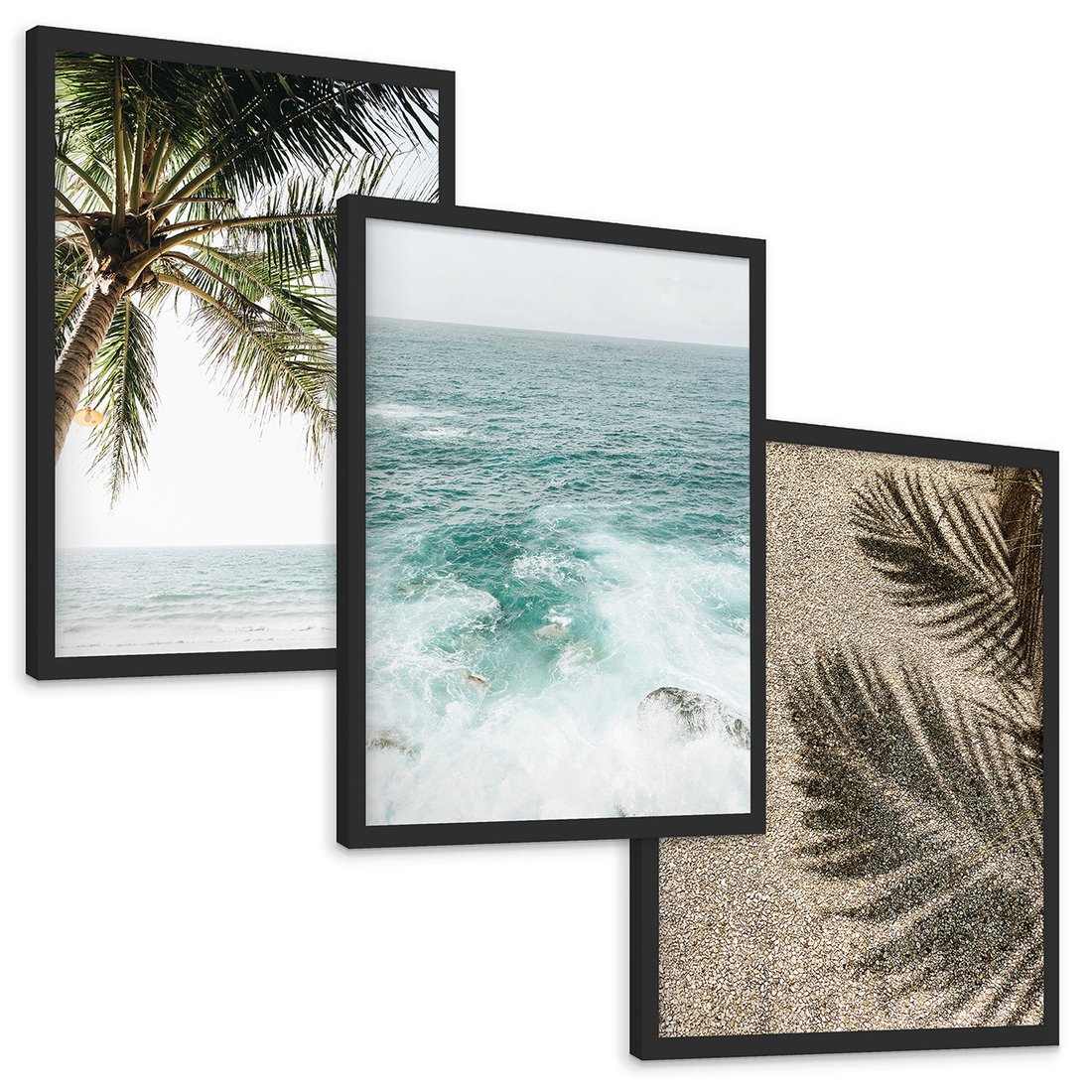 - Zestaw obrazy w ramie, plakaty - palma, morze, cień