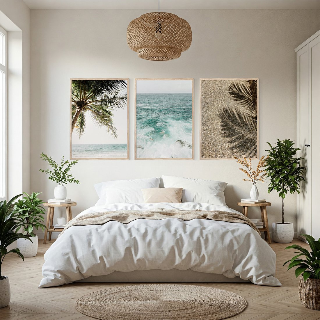 Przenieś piękno sztuki do swojego domu dzięki naszemu starannie skomponowanemu produktowi zestaw obrazów palma, morze, cień. Każdy plakat, oprawiony w elegancką ramę, łączy w sobie estetykę i trwałość. Uniwersalne wzornictwo sprawia, że te dekoracje ścienne doskonale komponują się z różnymi stylami wnętrz, od nowoczesnych po klasyczne. Łatwość montażu pozwala na szybką i bezproblemową metamorfozę Twojej przestrzeni. To również idealny pomysł na wyszukany prezent, który z pewnością zachwyci.