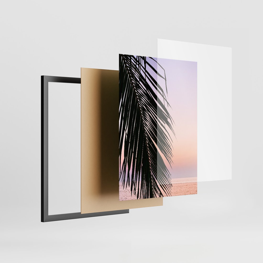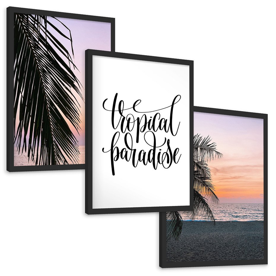 Zestaw obrazy w ramie, plakaty - palma, tropiki, morze - rama czarna