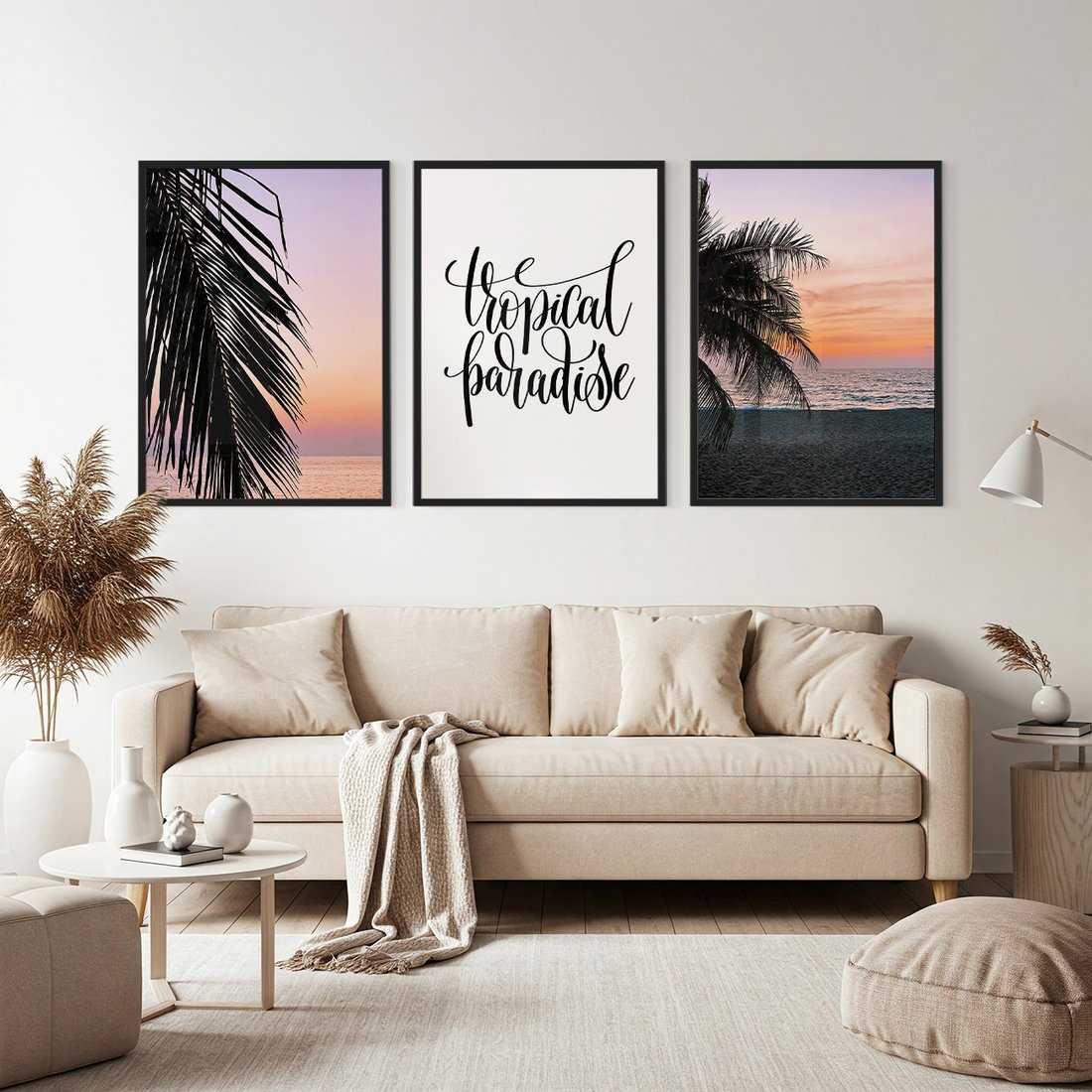 • Zestaw obrazy w ramie, plakaty - palma, tropiki, morze