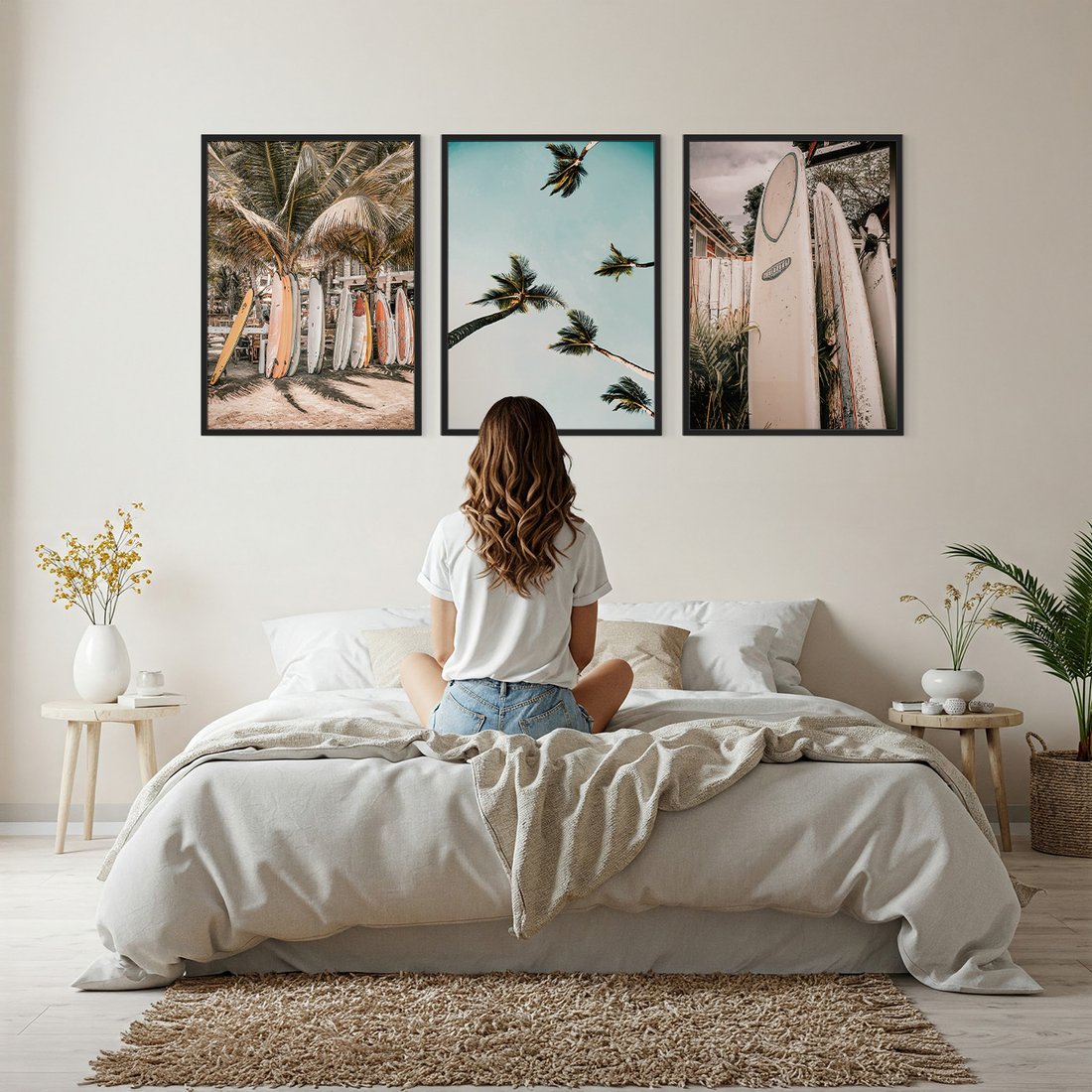 Przenieś piękno sztuki do swojego domu dzięki naszemu starannie skomponowanemu produktowi zestaw obrazów palmy, deski surfingowe, plaża. Każdy plakat, oprawiony w elegancką ramę, łączy w sobie estetykę i trwałość. Uniwersalne wzornictwo sprawia, że te dekoracje ścienne doskonale komponują się z różnymi stylami wnętrz, od nowoczesnych po klasyczne. Łatwość montażu pozwala na szybką i bezproblemową metamorfozę Twojej przestrzeni. To również idealny pomysł na wyszukany prezent, który z pewnością zachwyci.