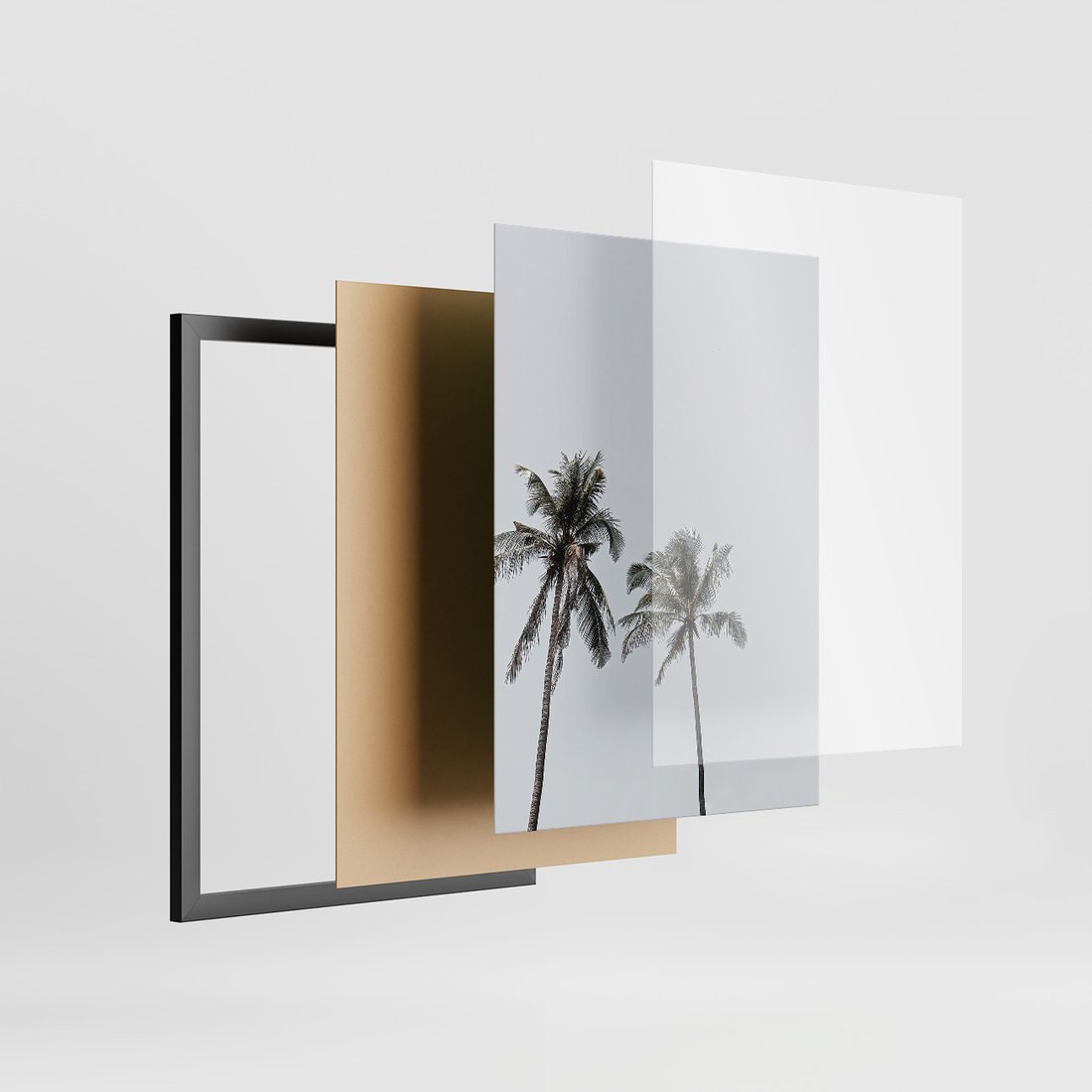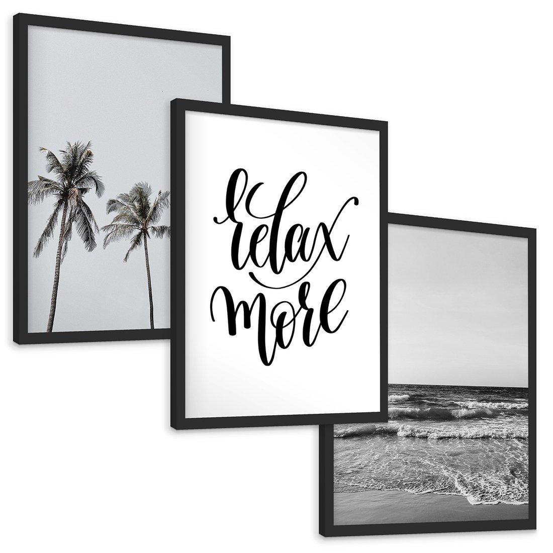 Zestaw obrazy w ramie, plakaty - palmy, morze, relax - rama czarna