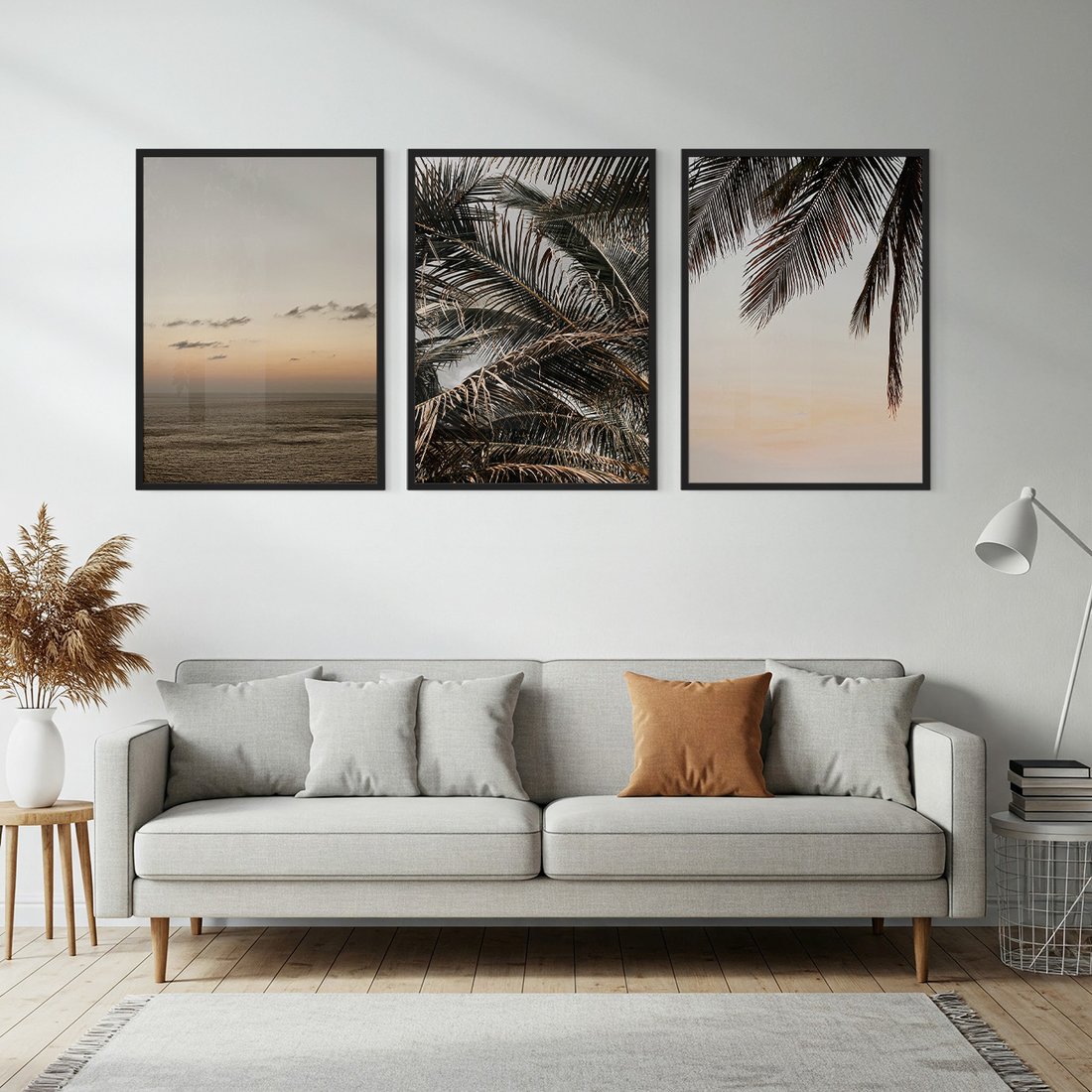 - Zestaw obrazy w ramie, plakaty - palmy, ocean, liście