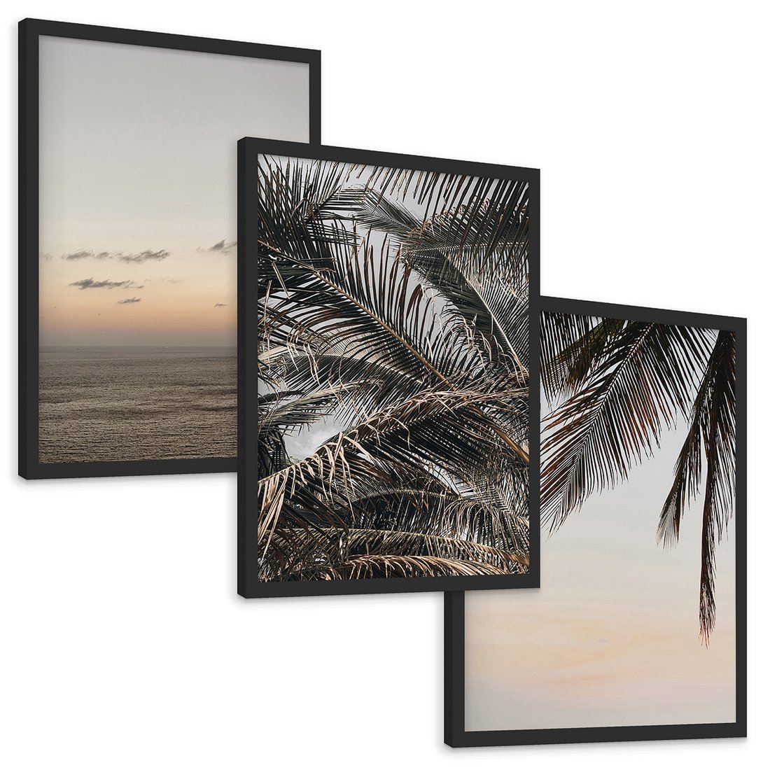 Zestaw obrazy w ramie, plakaty - palmy, ocean, liście - rama czarna