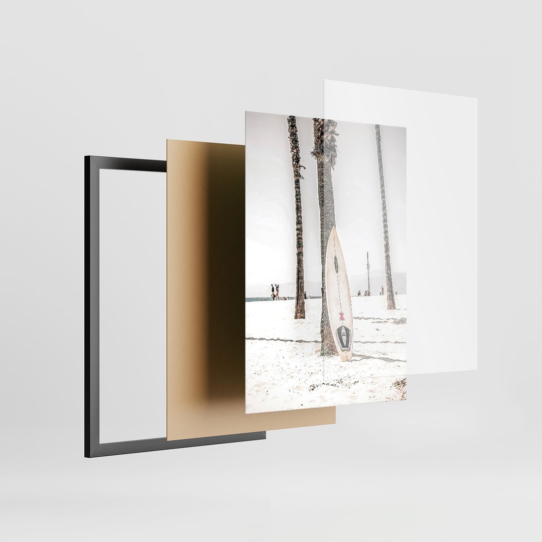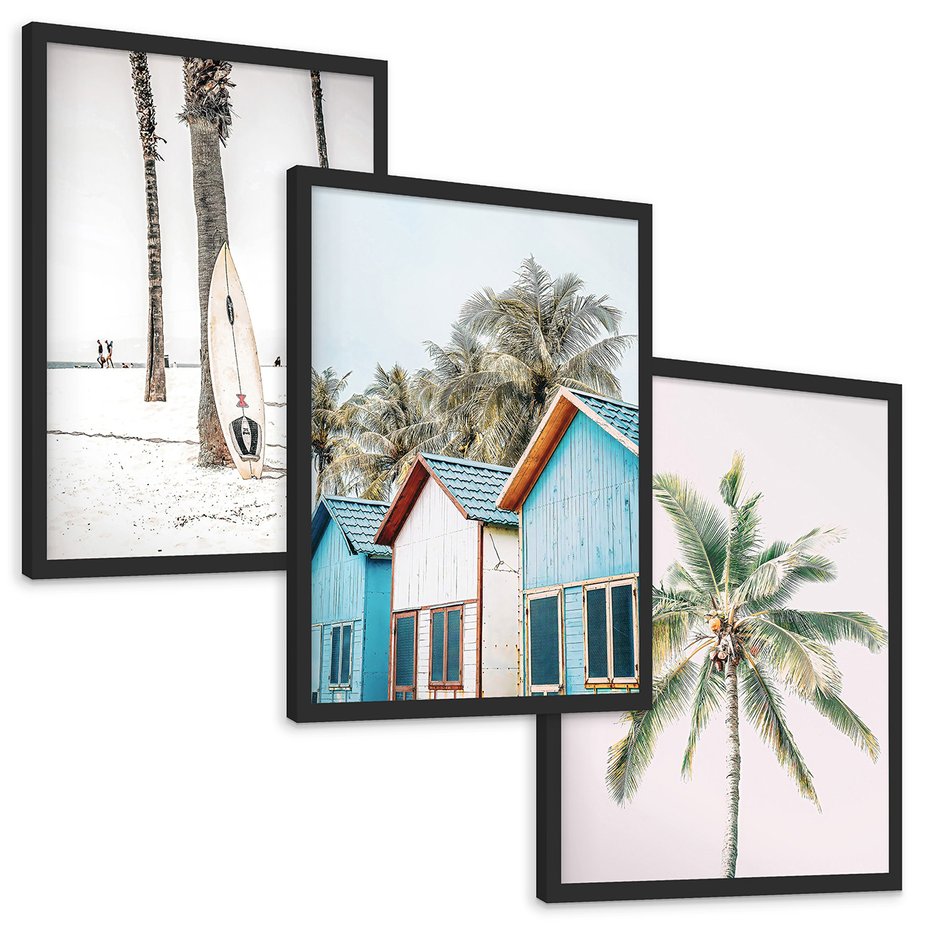 - Zestaw obrazy w ramie, plakaty - palmy, plaża, domki