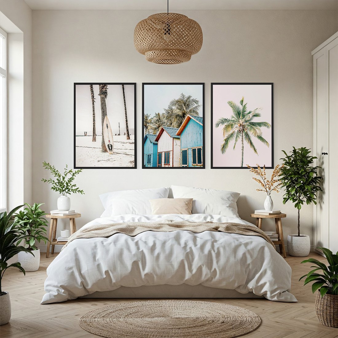 Przenieś piękno sztuki do swojego domu dzięki naszemu starannie skomponowanemu produktowi zestaw obrazów palmy, plaża, domki. Każdy plakat, oprawiony w elegancką ramę, łączy w sobie estetykę i trwałość. Uniwersalne wzornictwo sprawia, że te dekoracje ścienne doskonale komponują się z różnymi stylami wnętrz, od nowoczesnych po klasyczne. Łatwość montażu pozwala na szybką i bezproblemową metamorfozę Twojej przestrzeni. To również idealny pomysł na wyszukany prezent, który z pewnością zachwyci.