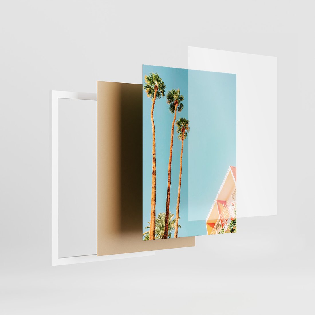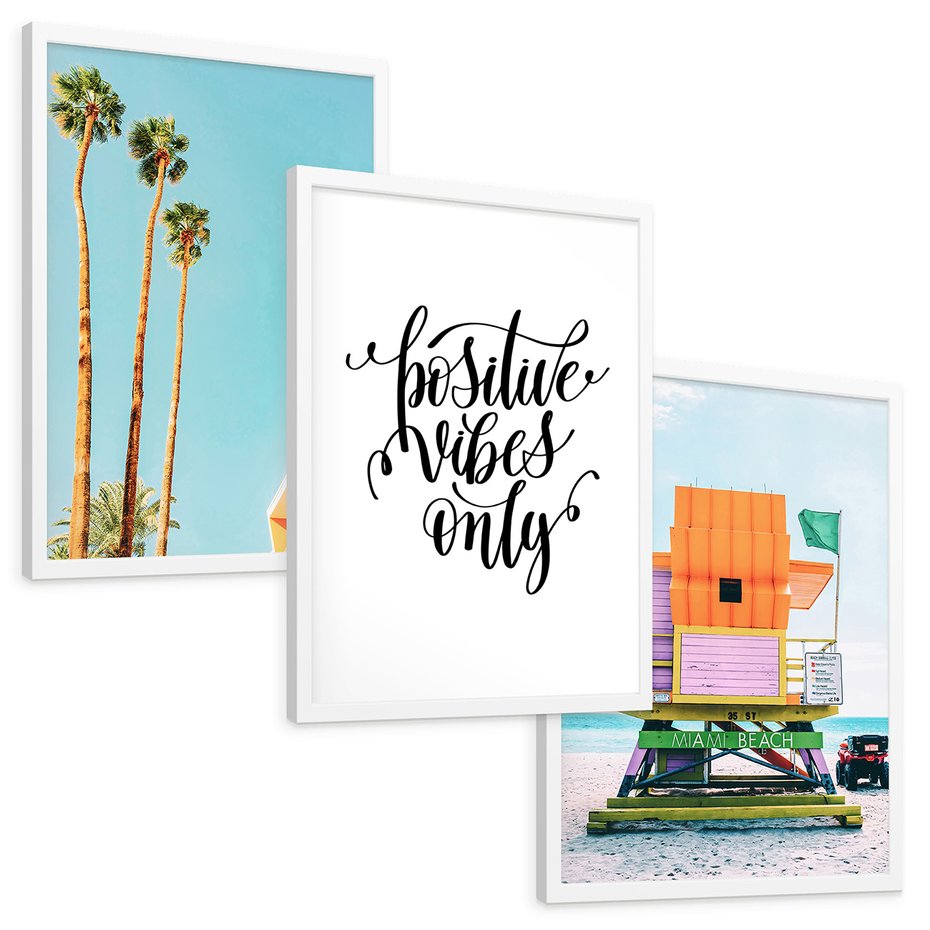 Zestaw obrazy w ramie, plakaty - palmy, plaża, tropikalny - rama biała
