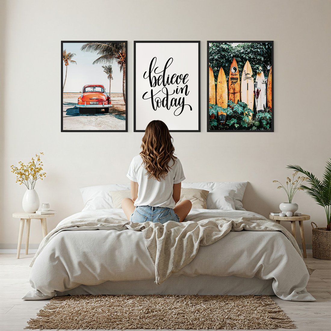 Przenieś piękno sztuki do swojego domu dzięki naszemu starannie skomponowanemu produktowi zestaw obrazów palmy, samochód, deski surfingowe. Każdy plakat, oprawiony w elegancką ramę, łączy w sobie estetykę i trwałość. Uniwersalne wzornictwo sprawia, że te dekoracje ścienne doskonale komponują się z różnymi stylami wnętrz, od nowoczesnych po klasyczne. Łatwość montażu pozwala na szybką i bezproblemową metamorfozę Twojej przestrzeni. To również idealny pomysł na wyszukany prezent, który z pewnością zachwyci.